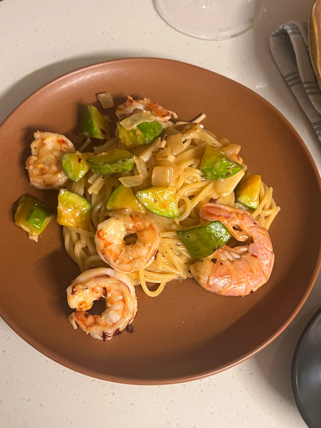 새우애호박크림파스타는 오일을 두른 팬에 마늘을 노릇하게 구워주시다가 애호박, 새우 차례대로 넣어 맛있게 익혀주세요.