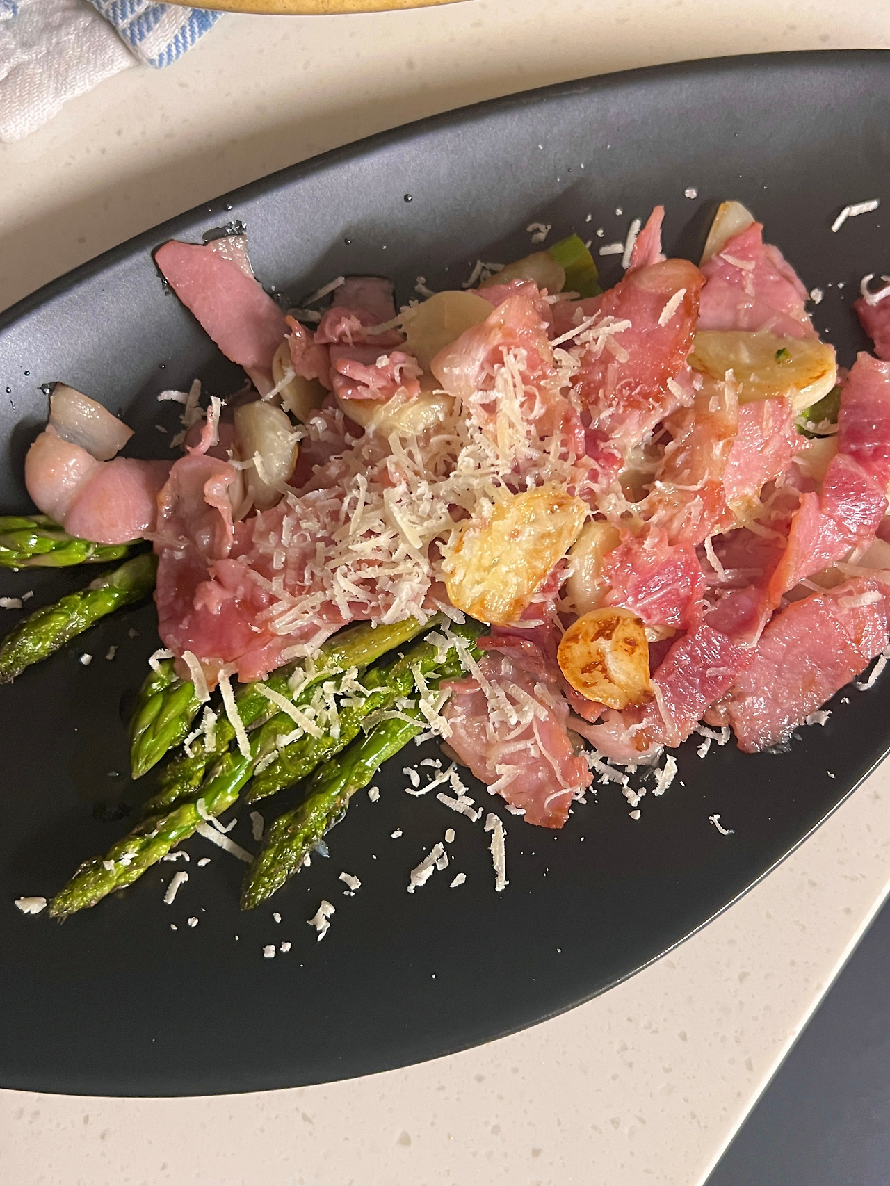 아스파라거스는 얇기 때문에 마지막에 살짝만 구워내 식감을 살려주시면 더욱 좋아요!