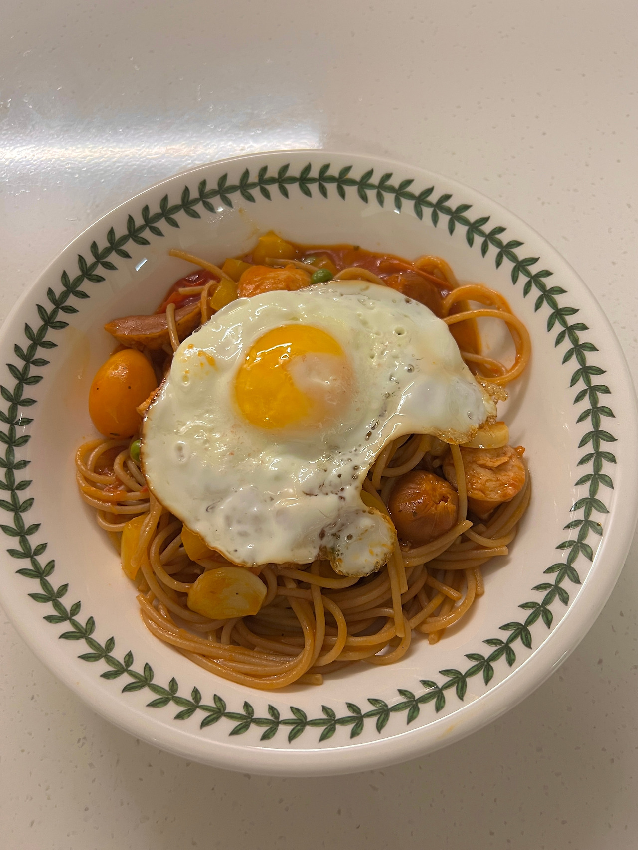 오늘의 메인이라고 할 수 있는 나폴리탄파스타의 경우 토마토소스, 소세지, 계란, 마늘만 있다면 완성이기 때문에 정말 쉽고 맛있게 먹을 수 있어요.