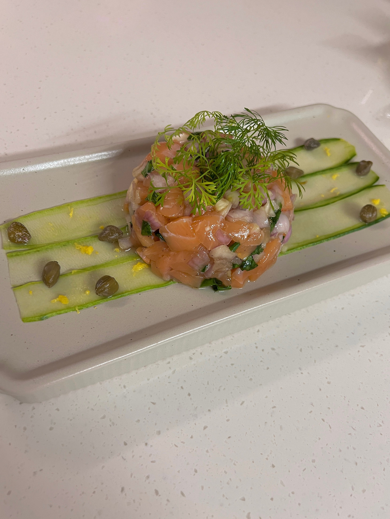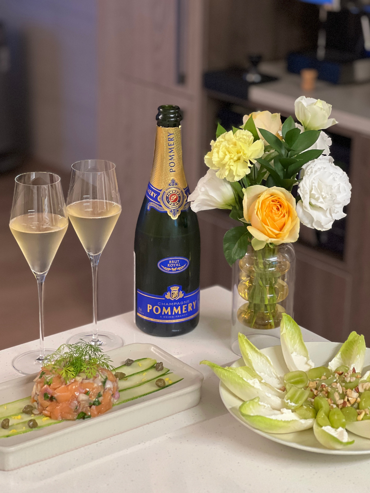 맛있는 샴페인와 함께하는 오늘의 요리는 연어 타르타르와 엔다이브청포도샐러드 입니다.