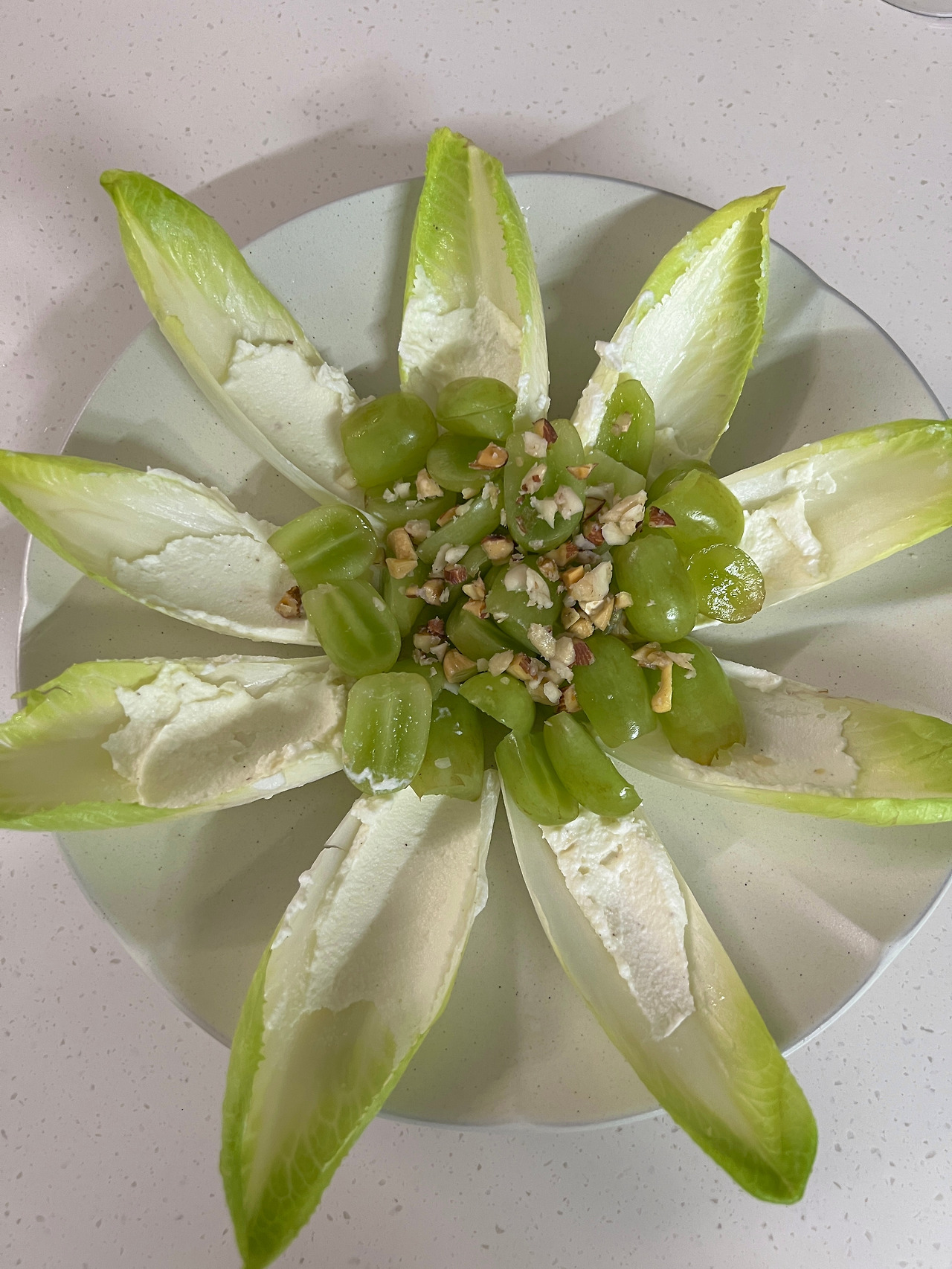 엔다이브에 리코타와 레몬즙, 꿀을 섞은 소스를 발라줍니다.