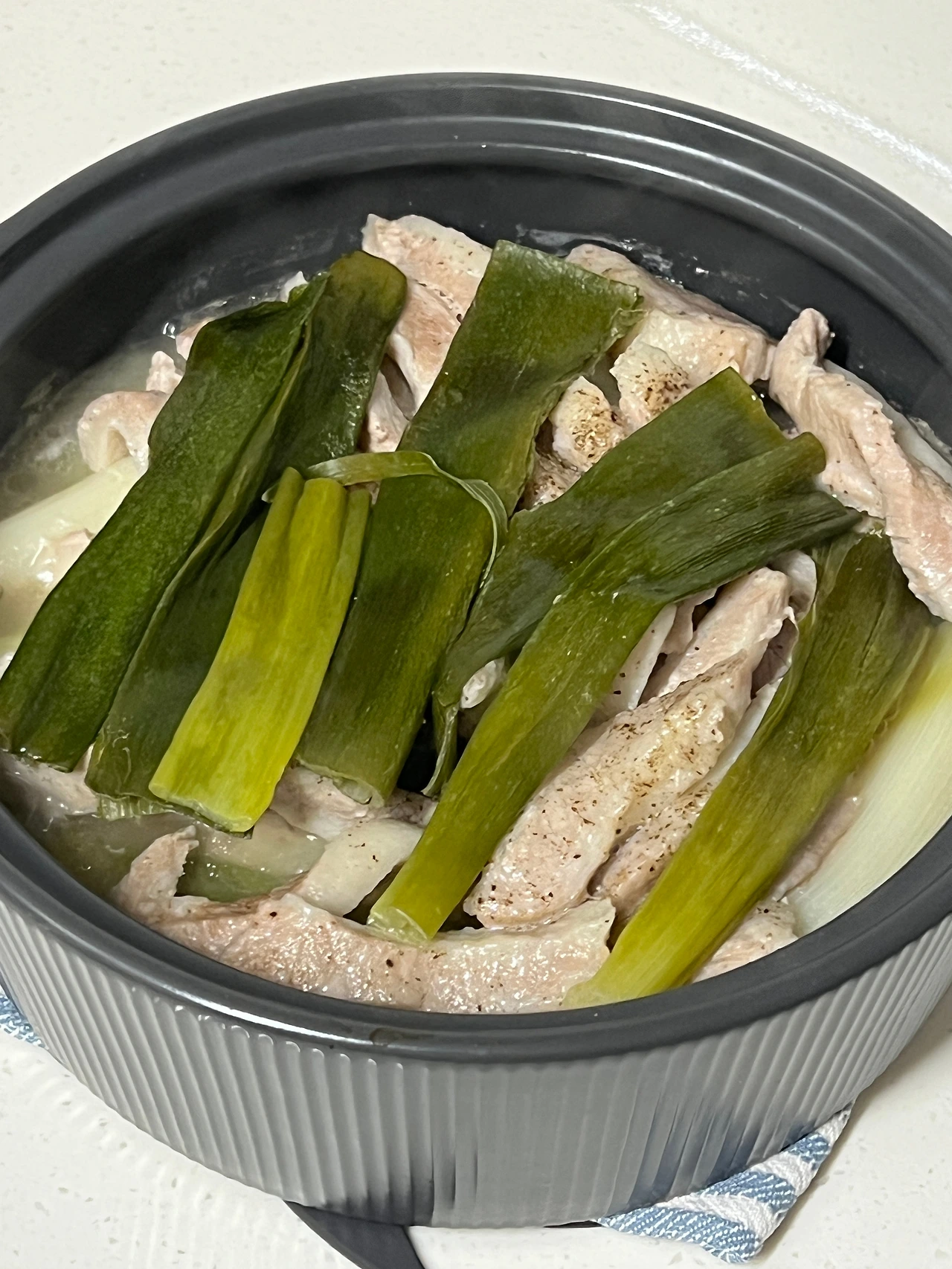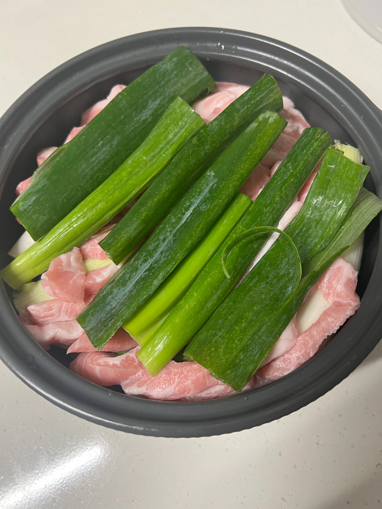 양파와 파를 가득 넣고, 소금과 후추 약간, 항정살을 올린 뒤 소주를 콸콸콸.