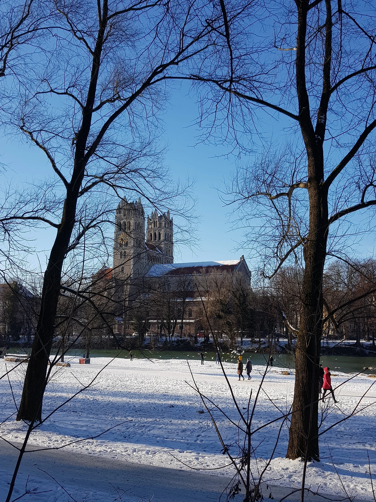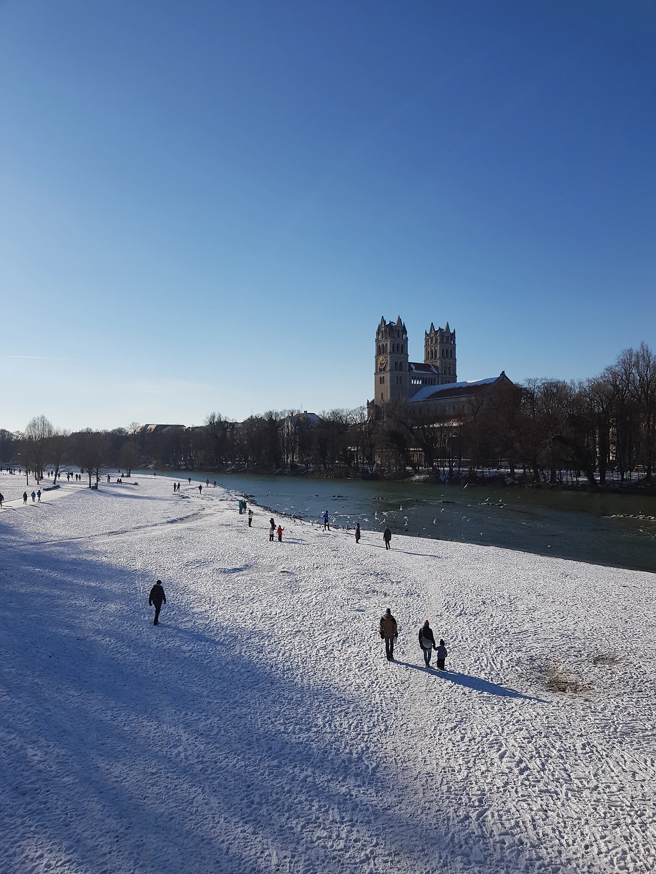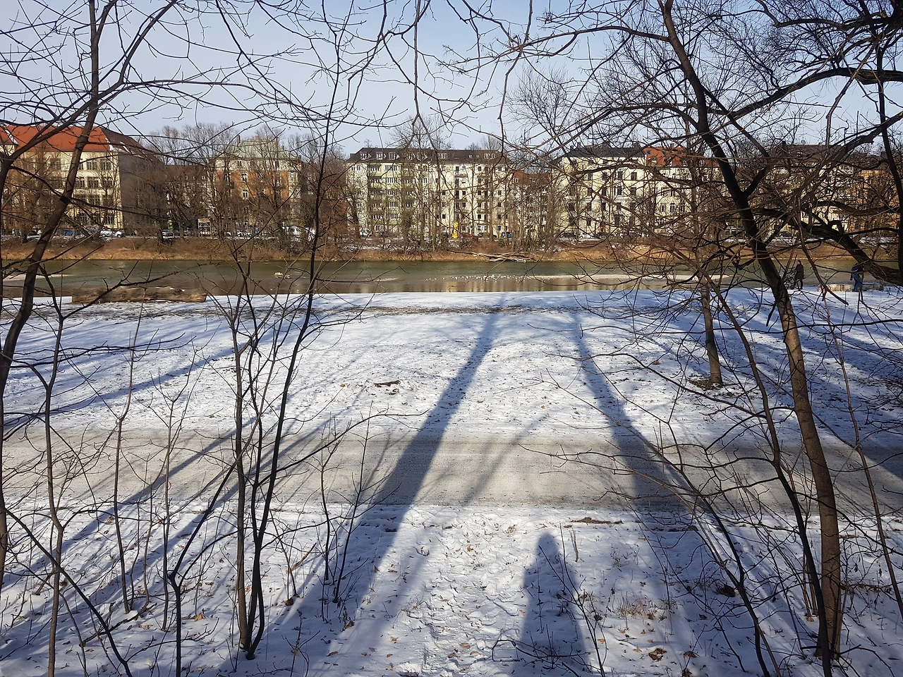 뮌헨의 이자르강 산책길. 지난 주 폭설 후 5일째 눈이 녹지 않는다.