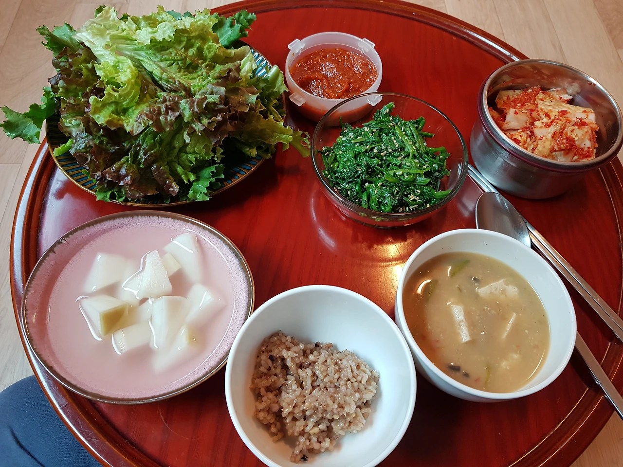 입원하기 전에 언니가 차려준 밥상. 친정 엄마가 보내신 음식으로. 이 소박하고 단순하고 정갈한 밥상을 위해서라도 빨리 퇴원해야지.