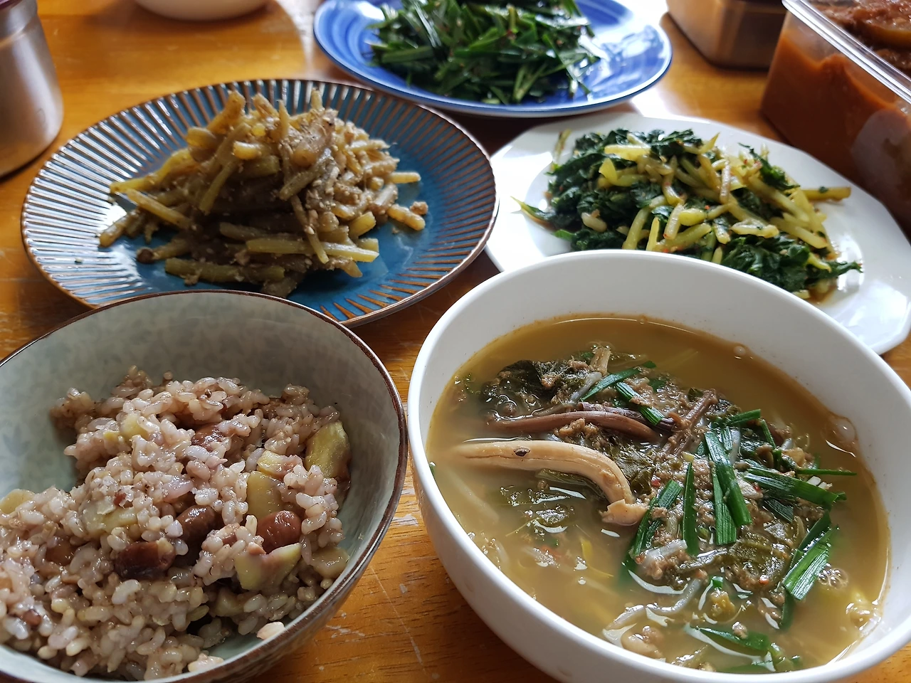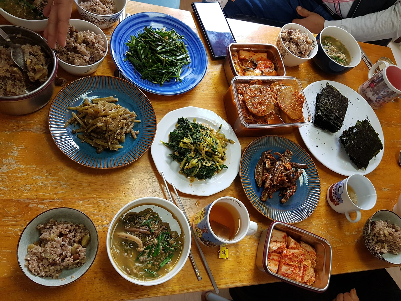 선희 언니의 마음의 사이즈와 비례하는 음식들. 저걸 차에 싣고 와서 즉석에서 데우고 무치고 구워서 밥상을 차려주었다.