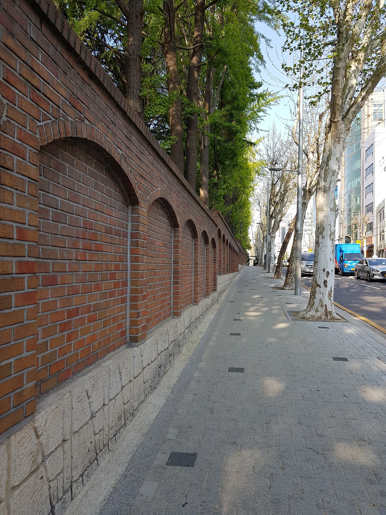 서울 교대 돌담길과 연지 엄마와 앉았던 벤치.
