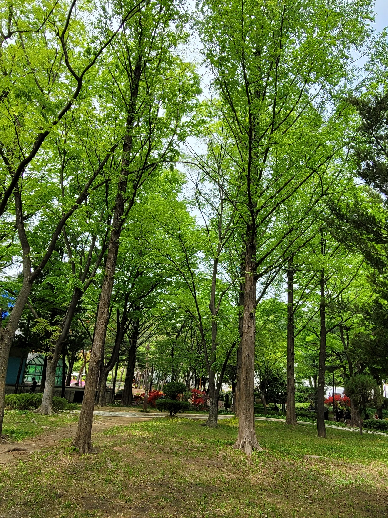 철쭉은 지려하고 공원의 나무들은 울창해졌다.