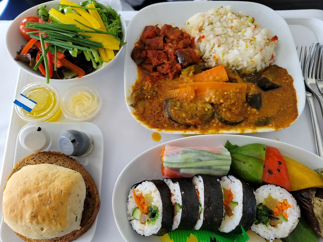 비행기에서 잠은 많이 못 잤다. 눕는다고 잠이 오는 건 아니라서. 누워서 책을 읽다가 두세 번 깜빡 잔 게 다였다. 탑승객이 적어서 기대대로 언니도 누울 수 있다고 했다. 중간에 승무원 편으로 영양제도 보내고, 문자로 안 춥냐고 추우면 뭘뭘 보내겠다고 해서 나한테 또 혼나고. 난 덥기만 하던데. 따뜻한 담요까지 있는데 춥긴 뭐가 춥냐고. 한국에 올 때는 기내식을 거의 안 먹었는데 이번에는 맛있게 먹었다. 두 번 다 양이 많아서 반만 먹었다. 남편이 채식으로 예약한 건 잘했다. 중간에 시간을 보니 아직도 5시간이나 남았다. 영화 한 편을 보면 절반은 날아갈 듯해서 고른 건 독일에서 작년 봄에 개봉한 헤세의 <나르치스와 골드문트>. 헤드폰 없이 영어 자막만으로 대충 본다고 해서 마음이 아프지 않은 건 아니더라. 아, 헤세여! 나르치스여, 골드문트여.