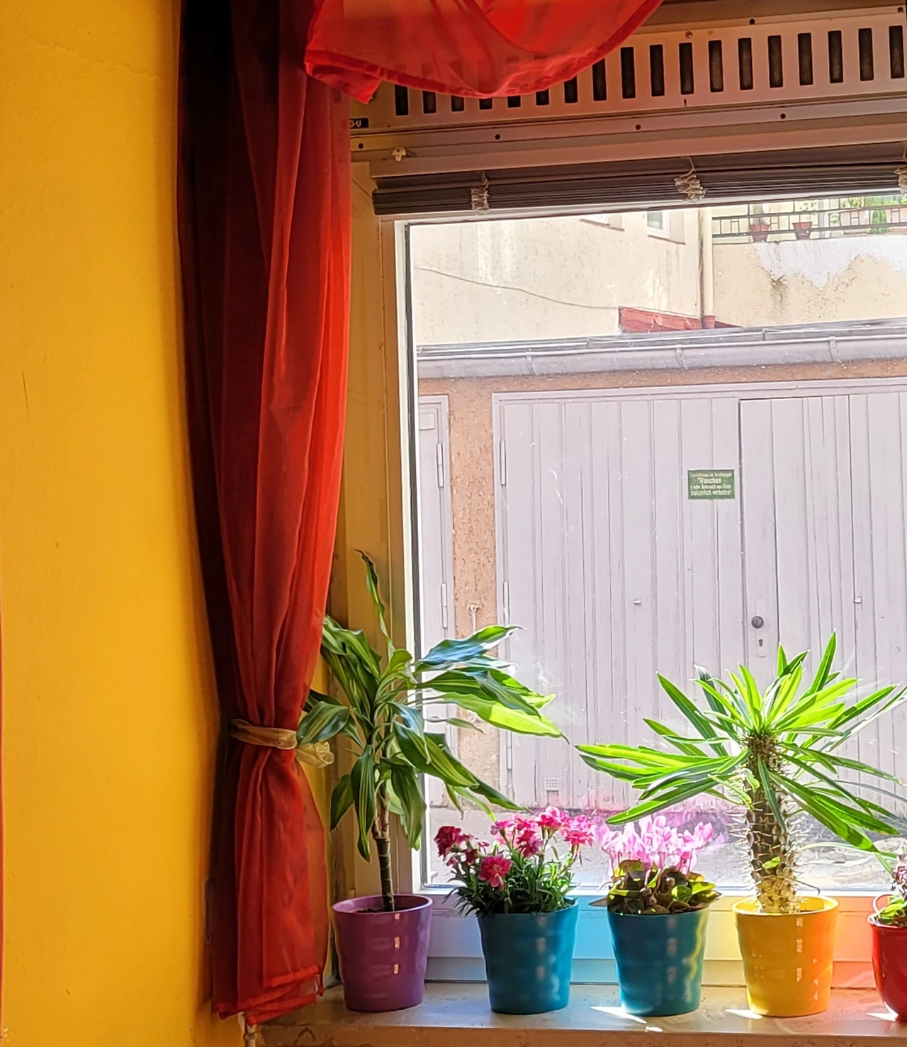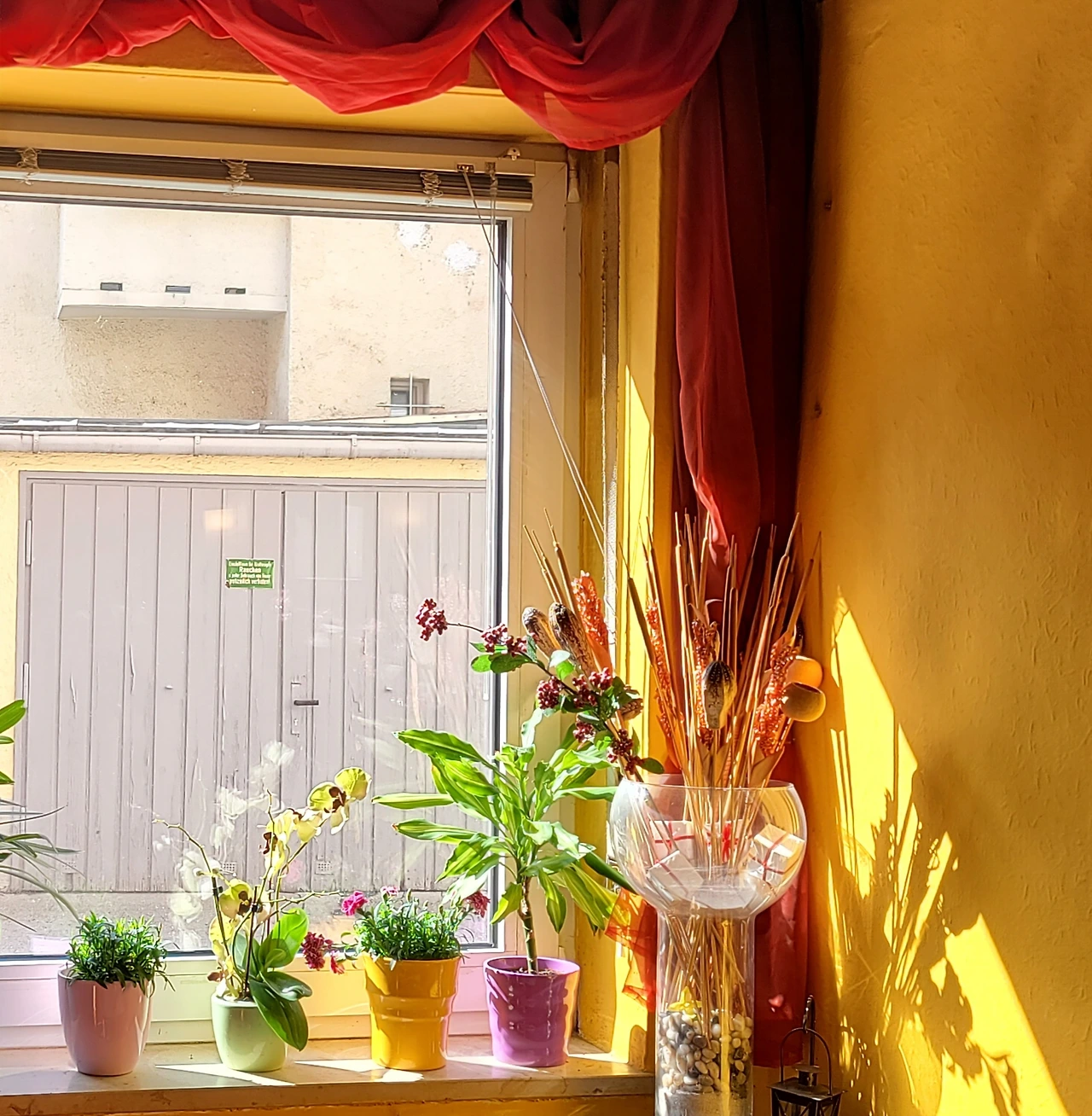 코로나 시대의 카페는 낭만적이지 않다. 테이크 아웃 밖에 안 되는 카페가 어디 카페인가. 어딜 가도 앉을 데가 없다. 내가 즐겨 앉던 카페의 창쪽에는 테이블과 의자가 켜켜이 쌓여있었다. 변하지 않은 건 창가에 놓인 색색의 화분들. 오후의 햇살이 비쳐들자 황금빛으로 빛나는 노란 벽. 벽에 바짝 몸을 붙이고 미동도 없이 서 있던 붉은 커튼. 슈테판이 차를 내오는 그 짧은 시간 동안 고요가 창가에 내려앉아 잠시 머물다 갔다. 카페 안에는 슈테판이 친구들을 위해 마련해 둔 테이블도 하나. 사막의 오아시스 같은. 깊은 산중의 암자 같은. 그곳에 앉아 할아버지 친구가 끓여온 민트차를 마시던 오월의 한나절. 삶에게 '네'라고 말하기 좋은 시간이었다.