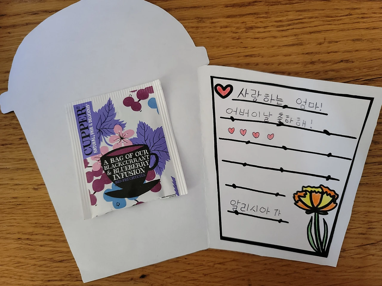 2021. 5. 8. 한국의 어버이날에 아이에게 받은 엽서.