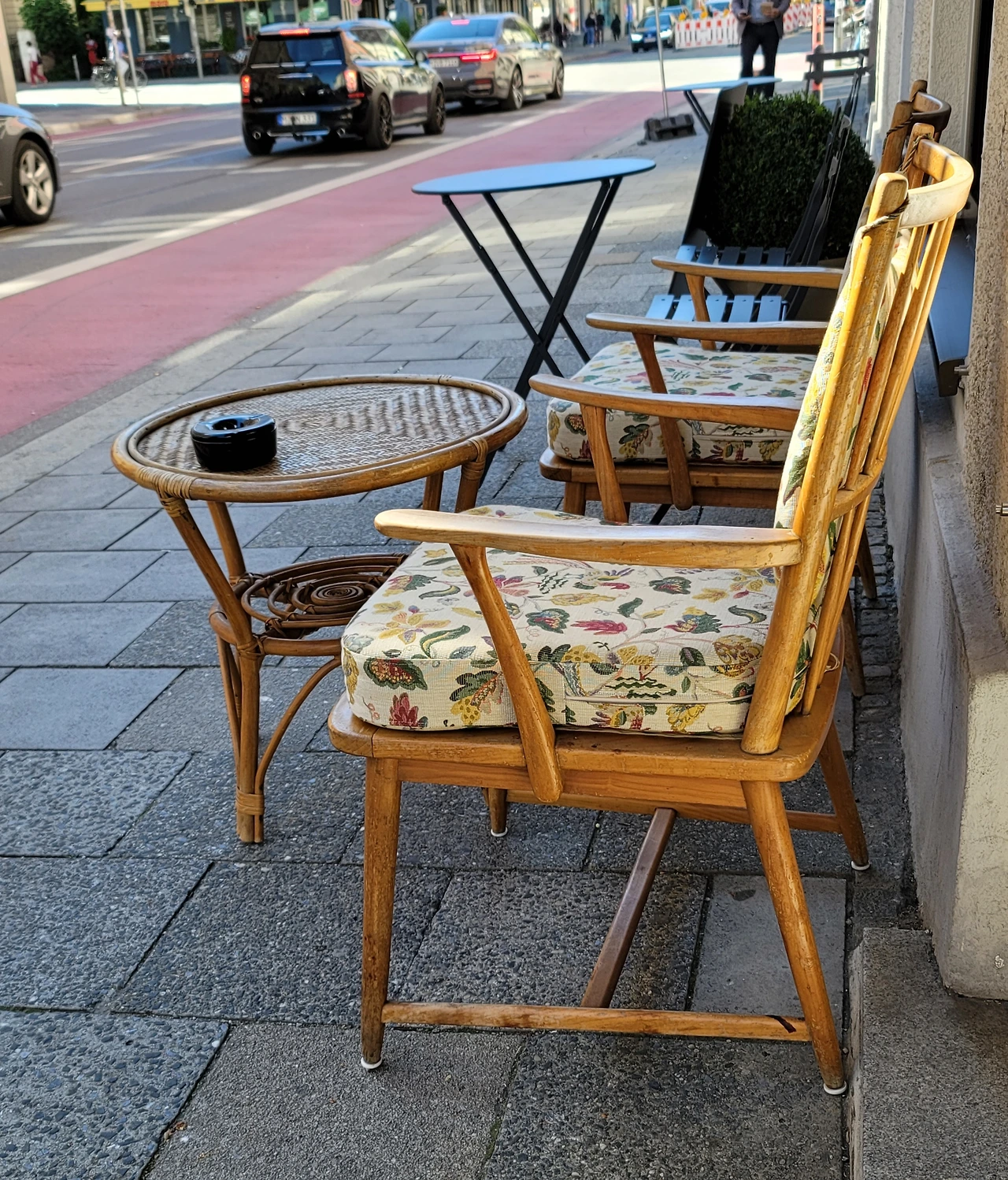 요즘 독일의 일출은 05:20 일몰은 21:00. 오월 말부터 화창한 날씨의 연속이다. 날씨가 좋으니 기분도 좋다. 무엇이든 잘 될 것 같은 느낌도. 사람들의 표정도 부드럽다. 왜 안 그렇겠는가. 거리마다 노천카페에 노천 레스토랑에 빈자리 없이 사람들로 꽉 찬 모습을 도대체 얼마 만에 보는 것인지. 그래서 우리도 앉아보았다. 오후 늦게 언니와 시내로 산책을 나갔을때. 열쇠도 복사하고 (아직도 모든 집들이 열쇠를 사용한다. 건물 입구/현관문/우편함 세 개가 보통 한 세트다), 언니를 위해 새 앞치마도 사려고 했는데 앞치마는 못 사고 열쇠만 카피했다. 세 개에 31.50유로. 이 정도면 싼 편이다.
