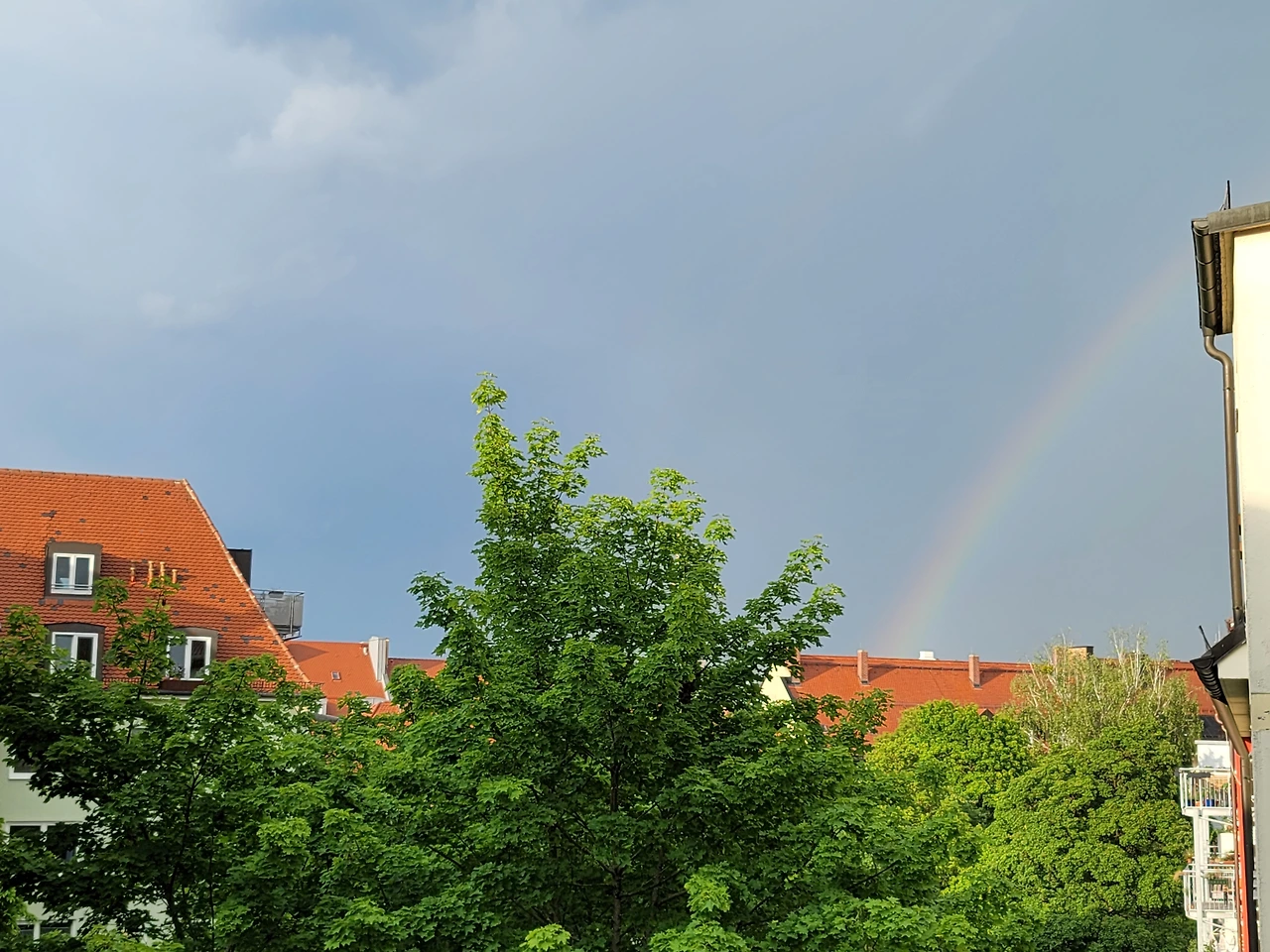 다섯 번째 항암 후 가발을 쓰고 뮌헨 시내로 외출함. 안 하던 화장을 하고 카페에서 차도 마시고 기념 사진까지. 오후 산책 후엔 소나기. 소나기 다음엔 무지개!