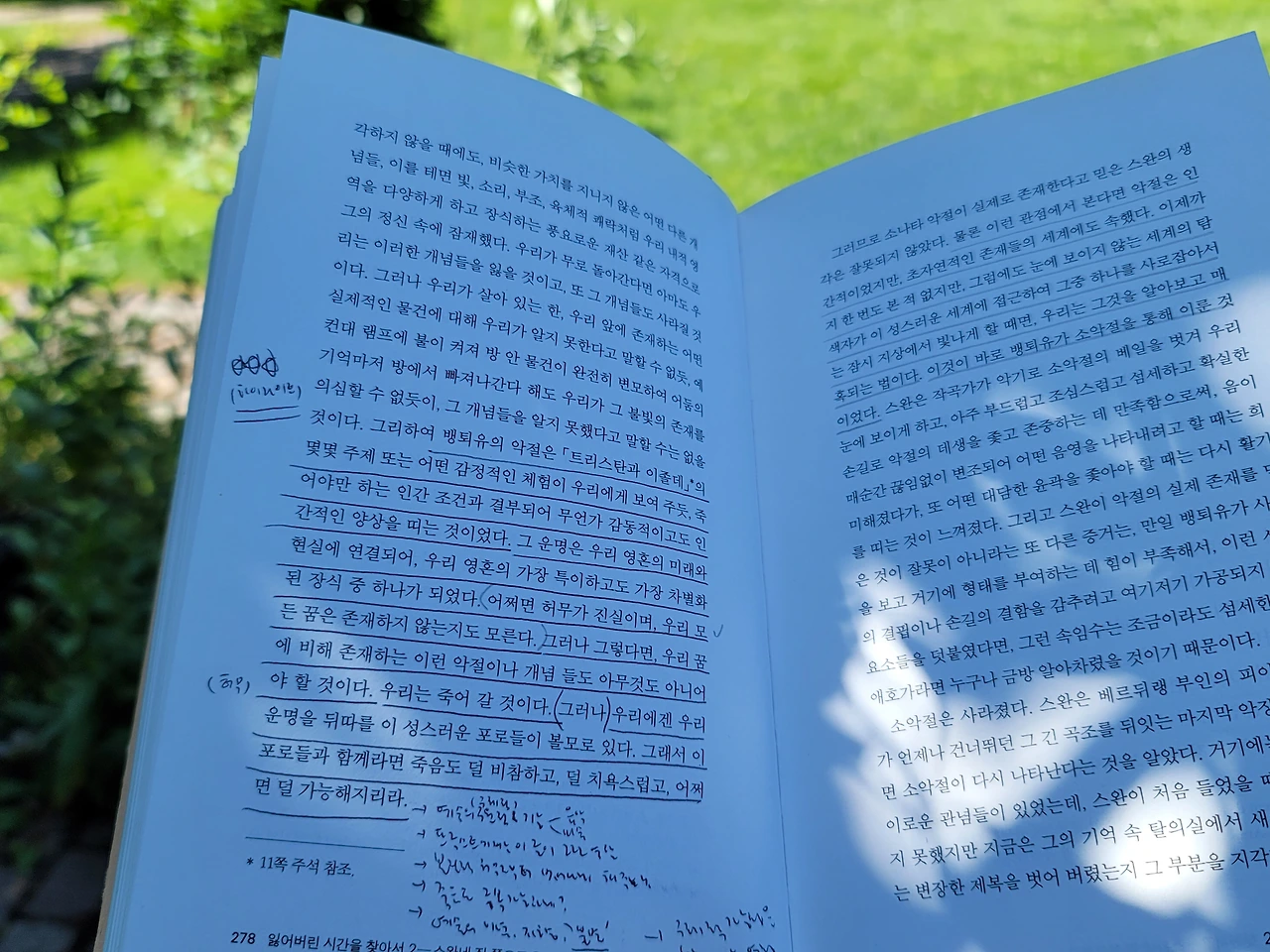 *초록 부분은 <잃어버린 시간을 찾아서 2> 마르셀 프루스트, 김희영 옮김, 민음사에서 인용함.