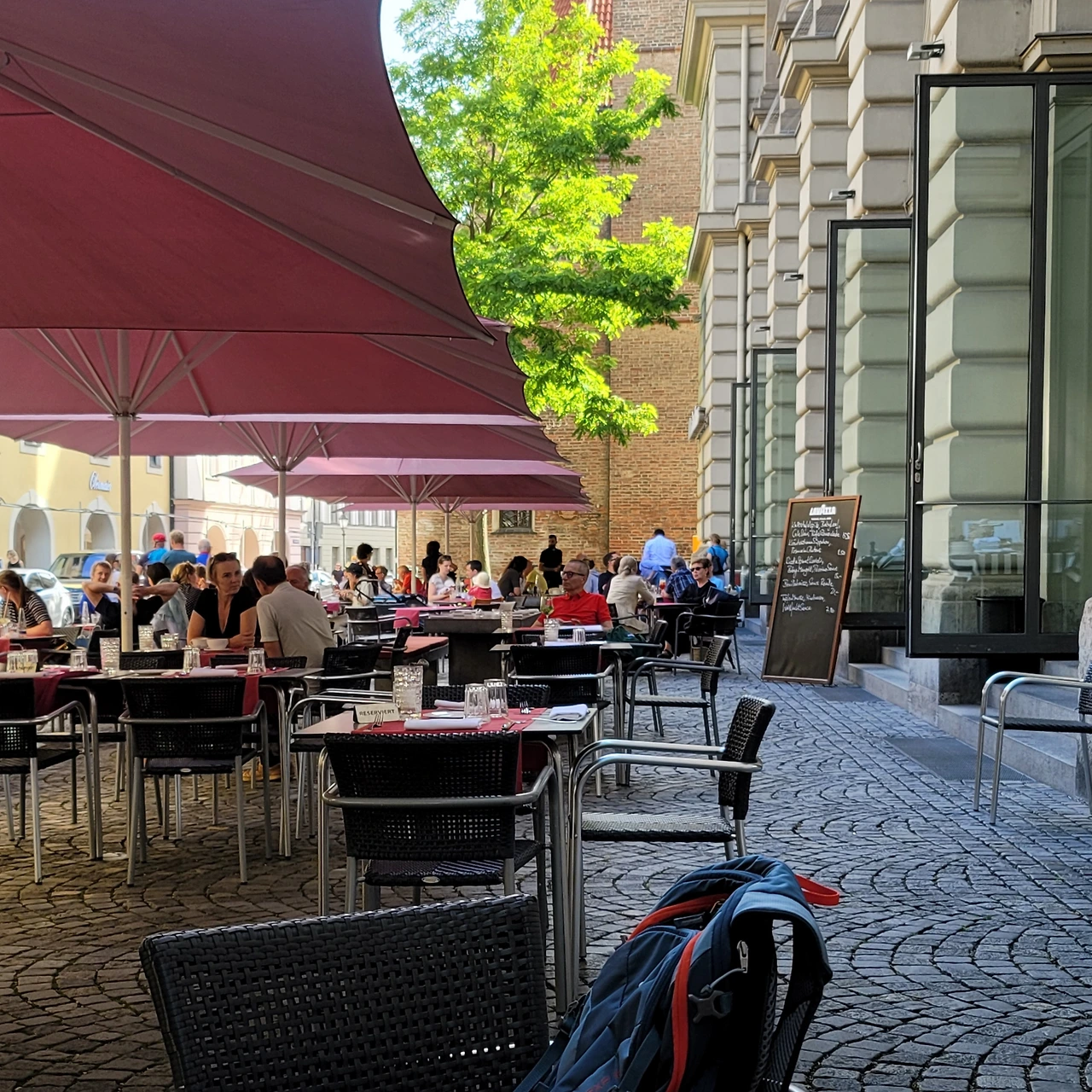 그날의 백미는 수다였다. 레아마리 맘과 우리 언니와 셋이서 한국어로 속시원히 떠드는 맛은 독일 맥주와 독일의 전통 음식인 슈바인 학세(복수는 학센)에 견줄 만했다. 슈바인 학센은 돼지 뒷다리를 오븐에 잘 구운 음식인데 한 번 먹고 나면 최소 서너 달은 생각나지 않는다. 겉은 바싹하고 속은 부드럽다. 독일 맥주와 먹으면 그만이다. 우리가 간 비어가든에서는 먹기 적당하게 1/2 사이즈를 주문할 수 있었다. 긴 안부와 집에 두고 온 아이들 소식과 함께 내 투병 보고는 짧게 끝냈다. 남편들도 자기들 만의 대화로 훈훈한 분위기 연출. 날씨가 어찌나 화창하던지 사람들이 다들 집 밖으로 나온 모양이었다. 레아마리네 차를 주차한 이탈리 Eataly 지하 주차장도 만차였다. 뮌헨 시내가 그렇게 북적이는 것을 코로나 이후 처음 보았다. 야외 카페에서 차를 마시다가 단체 관광객도 보았다. 몇 주 전부터 시내에서도 마스크 착용 규제가 풀렸다. 가게나 레스토랑 출입 시에만 마스크를 쓰고 테이블에 앉으면 벗어도 되었다. 코로나 테스트 결과지도 필요 없고, 비어가든에서만 이름과 연락처를 적었다.
