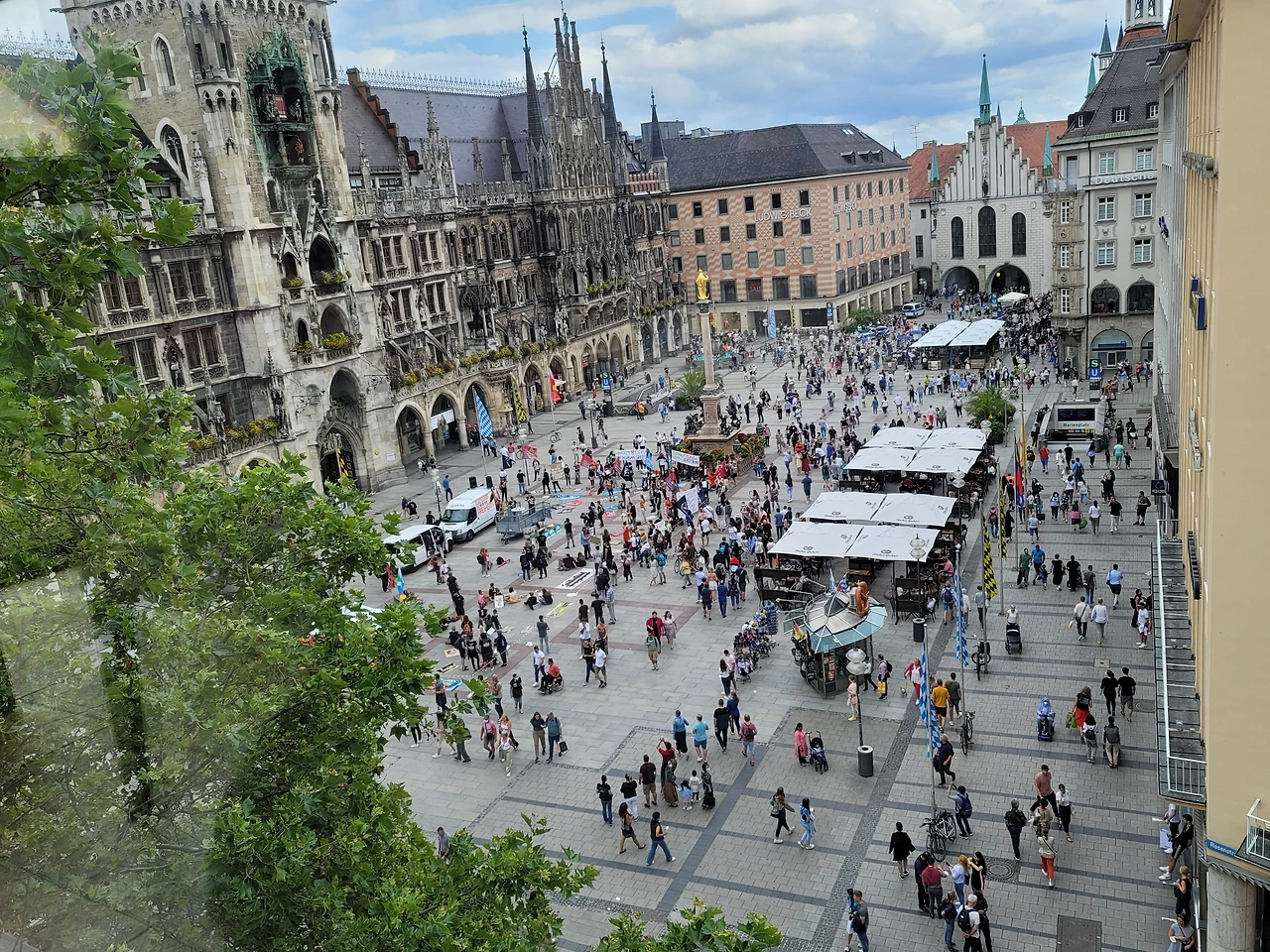 언니와 안과를 다녀오던 길에 이태리 형부의 독일 외숙모님을 우연히 만났다. 이 복잡한 관계도라니. 나의 형부이자 우리 언니의 남편은 이태리 사람이다. 형부의 외삼촌도 당연히 이태리 분. 외삼촌이 뮌헨의 옥토버 페스트에 오셨다가 독일분인 외숙모님을 만나 사랑에 빠지셨다는 이야기. 언니도 이태리에 살 때 외숙모님을 몇 번 뵈었다. 말로만 듣던 '뮌헨의 외숙모님'이 우리 집과 지하철 역 사이에 이웃으로 계시더라는 건 어떻게 설명해야 하나. '인연'이란 단어 말고는 설명할 길이 없다. 오데온즈 플라츠에서 뮌헨 시청 앞 마리온 플라츠까지 이어지는 길은 뮌헨의 유명한 쇼핑 거리를 직각으로 가로지르는 쇼핑 거리다. 일명 테아티너 슈트라세 Teatinerstraße. H&M과 자라 Zara 매장마저 명품처럼 보인다. 그 앞에는 당연히 언제나 긴 줄이 있다. 오데온즈 플라츠 쪽으로 더 걸어가면 퓐프 회페 Hünf Höfe라는 멋지고 깔끔한 쇼핑센터도 있다.