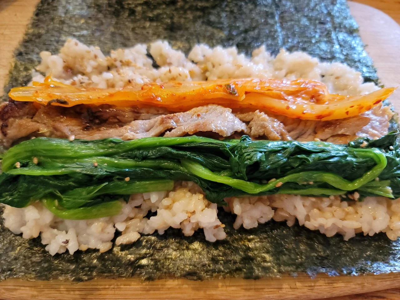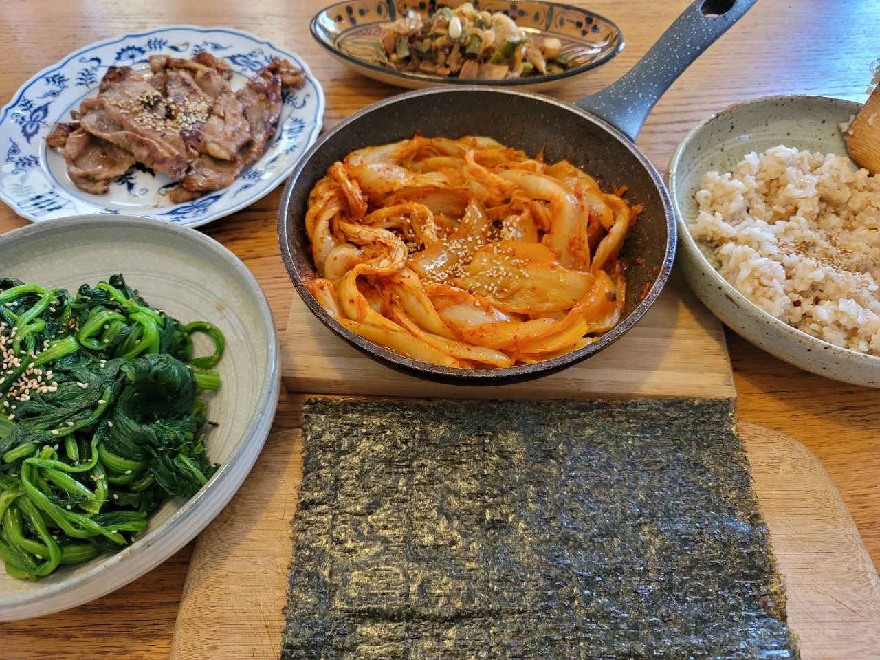 언니가 떠나기 전 잔뜩 사놓고간 얇은 소고기는 수많은 레시피를 동원해서 해치워야 했다. 김밥에 소고기를 넣어본 것도 처음이었다. 덕분에 아이와 남편이 맛있다며 엄지 척을 했다. 김밥 속은 복잡한 건 다 빼고 오로지 세 개만 넣었다. 쭉쭉 길게 잘라 볶은 김치, 시금치나물 그리고 소고기. 소고기가 얇아서 배추를 넣고 샤부샤부와 전골 느낌의 국물 요리도 해봤다. 한국식으로만 먹으니 지루해서 간 소고기를 넣은 파스타도. 그래도 남는 소고기 미션을 위해 소고기와 시금치만 넣은 잡채까지. 그렇게 소고기 레시피의 대장정은 막을 내렸다. 언니가 넉 달 반 동안 우리 동네 마트 에데카 Edeka 정육점에서 주문하고 또 주문하며 두께를 조절한 소고기였다. 서울로 돌아간 언니는 매일 하루 세 끼 밥상을 뚝딱 차려낸다고. 형부와 친정 엄마가 언니 밥상의 수혜자다. 연습 만한 스승은 없다. 하나도 안 힘들단다! 믿기 힘들지만. 하긴 나도 내가 한 음식이 맛있어졌다. 항암이 끝나면 조카는 휴식 시간에 맘껏 쉬어도 될 정도로.