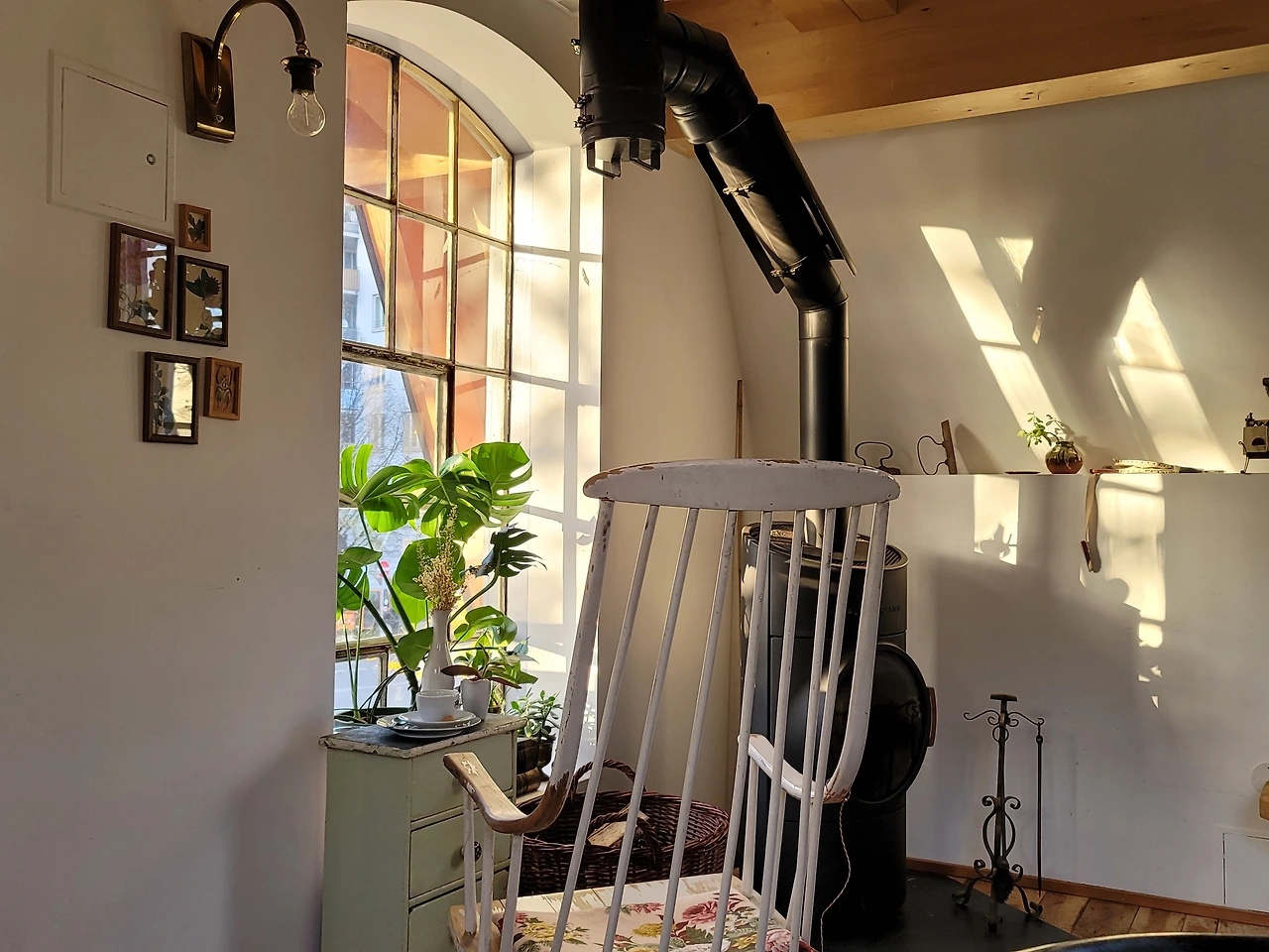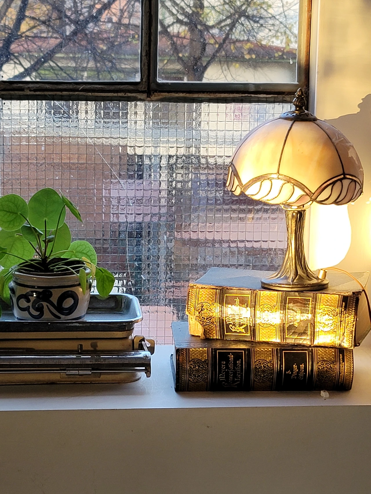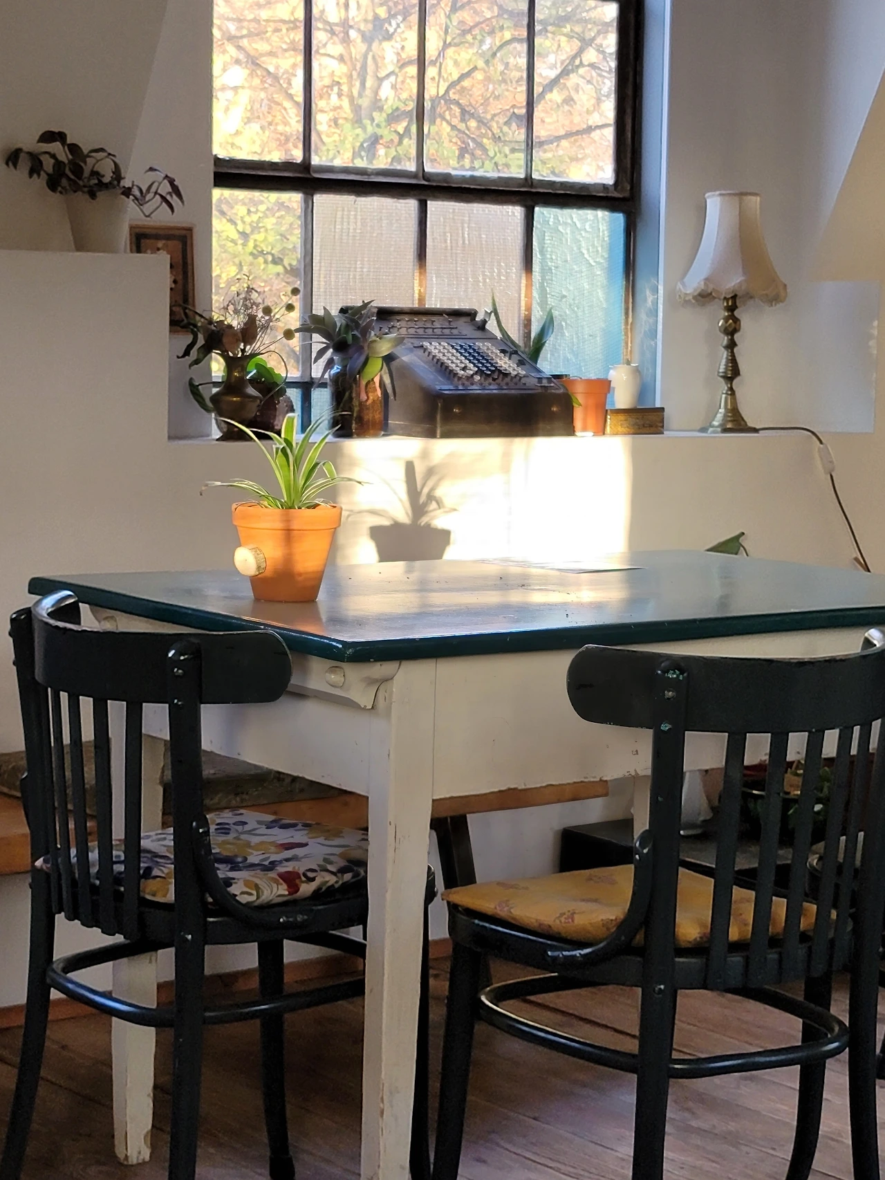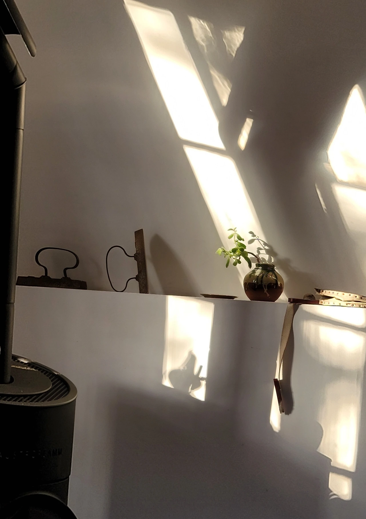 저녁 무렵 석양이 창가에 머무는 시간. 동네 카페 <마녀의 집>에서.