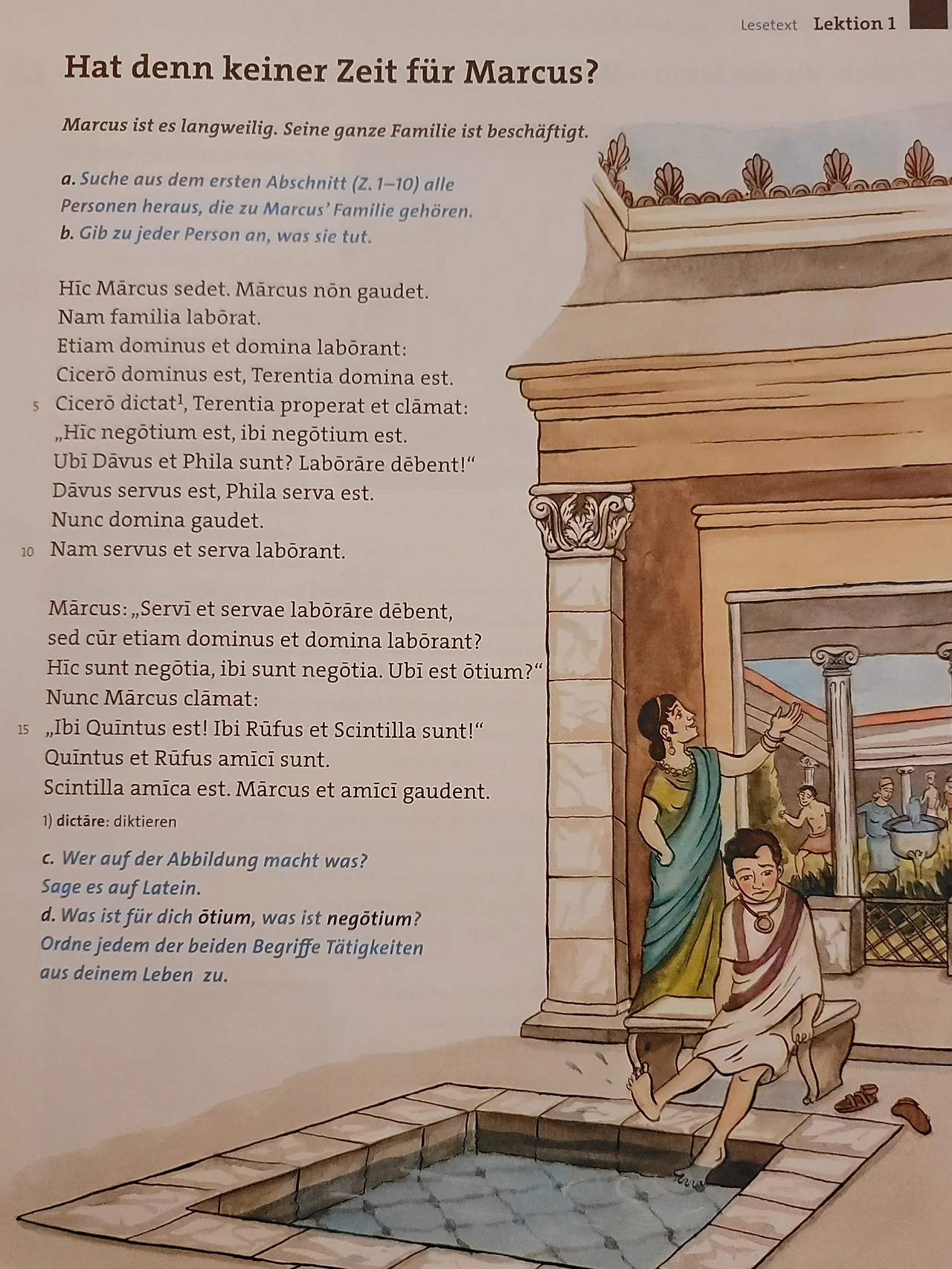 아직 어려서 먹혔다. 아이가 백기를 들고 투항하는 순간부터 일사천리였다. 1과~5과까지 매일 라틴어 어휘를 반복해서 연습하게했다. 내가 라틴어로 묻고, 아이가 독일어로 답했다. 라틴어는 철자 그대로 읽기에 어렵지 않았다. 프랑스어, 이태리어, 스페인어, 포르투갈어, 루마니아 등 숱한 언어의 어원이라 영어, 독일어와도 비슷한 어휘가 많았다. 아이보다 내가 유리한 점이었다. 물론 처음 배우는 언어가 쉬울 리가 있나. 반복과 연습이 최고의 전략. 아이는 명사와 동사를 집중적으로 외웠고, 마지막까지 어려워한 건 부사 정도였다. 다음에는 텍스트를 읽고 라틴어 문장을 독일어로 번역하기. 라틴어 공부의 핵심은 바로 여기에 있다. 라틴어는 죽은 언어, 즉 사어다. 라틴어 교과서에도 회화는 있지만 라틴어로 대화하는 나라는 세상 어디에도 없다. 우리로 치면 옛날 한자 비슷하다. 과거 시험을 위해 책으로 공부는하는데, 한자어로 대화를 한 건 아니니까. 라틴어 역시 옛 로마인들이 쓰던 언어로 지금은 가톨릭 미사나 라틴어 성경, 의학 용어 등 학술용으로만 남아 있다.
