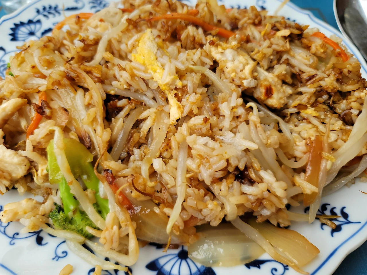 일요일 점심. 내 메뉴는 야채 볶음밥. 기름기 적고 맛있었음. (나만 다 먹음. 다른 분들은 왜 다 못/안 드시는지 분석 없이 열심히 먹음. 내 메뉴가 제일 맛있어 보여서.)