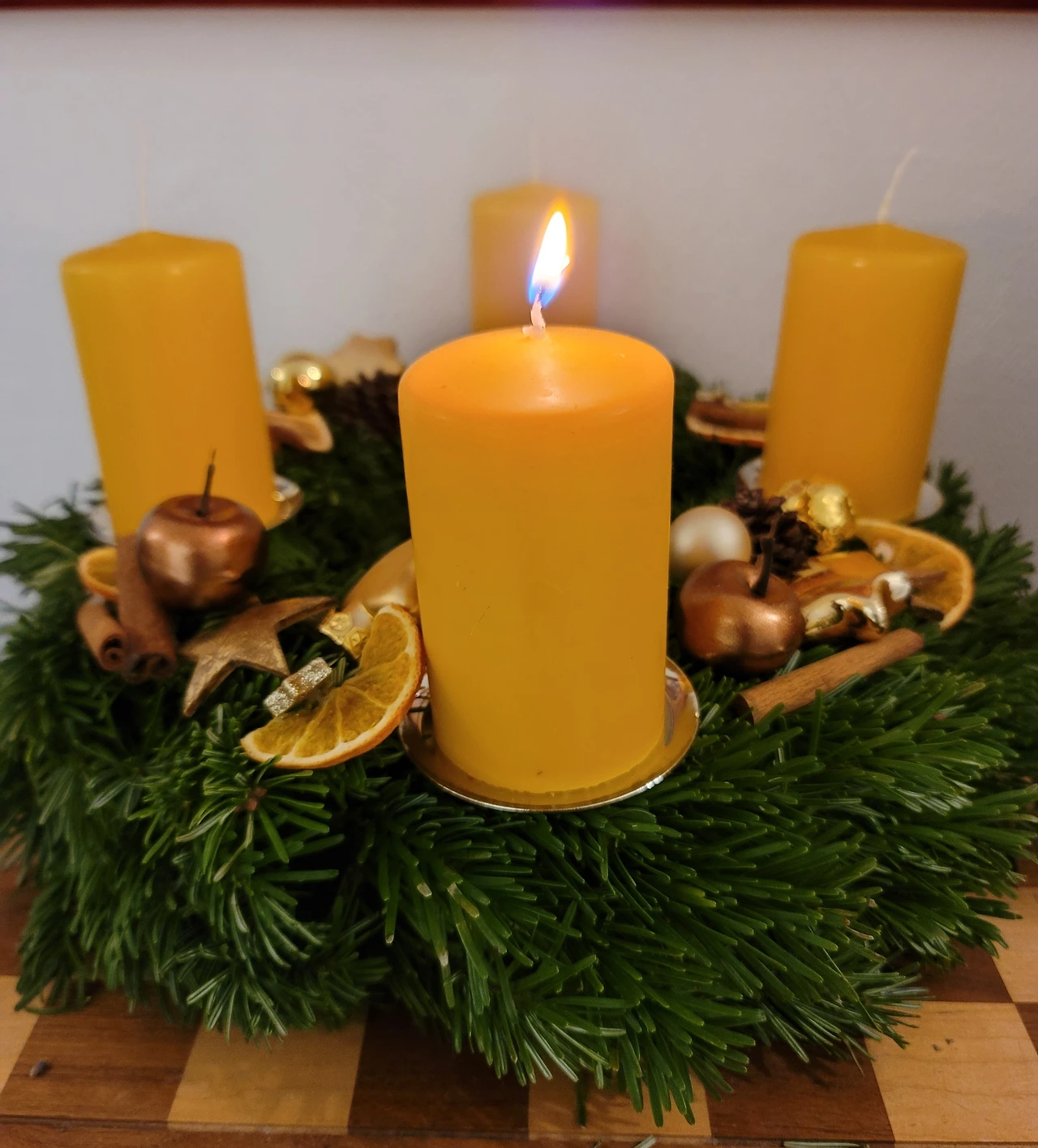 어머니 댁의 아드벤스 크란츠 초(위). 어머니 댁 발코니 화단에 8월에 처음 피고 11월에도 피어있는 장미(가운데). 올해 우리 집의 아드벤스 크란츠는 아이가 고른 노란색(아래).
