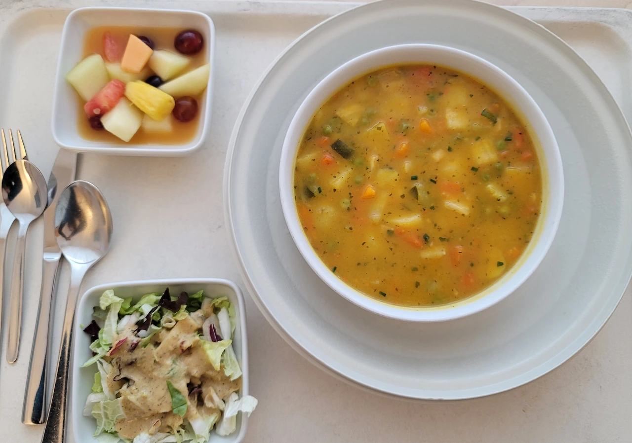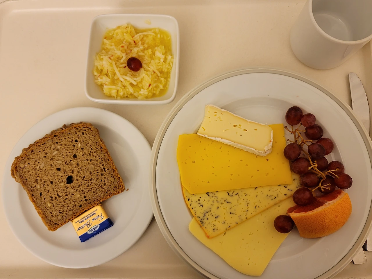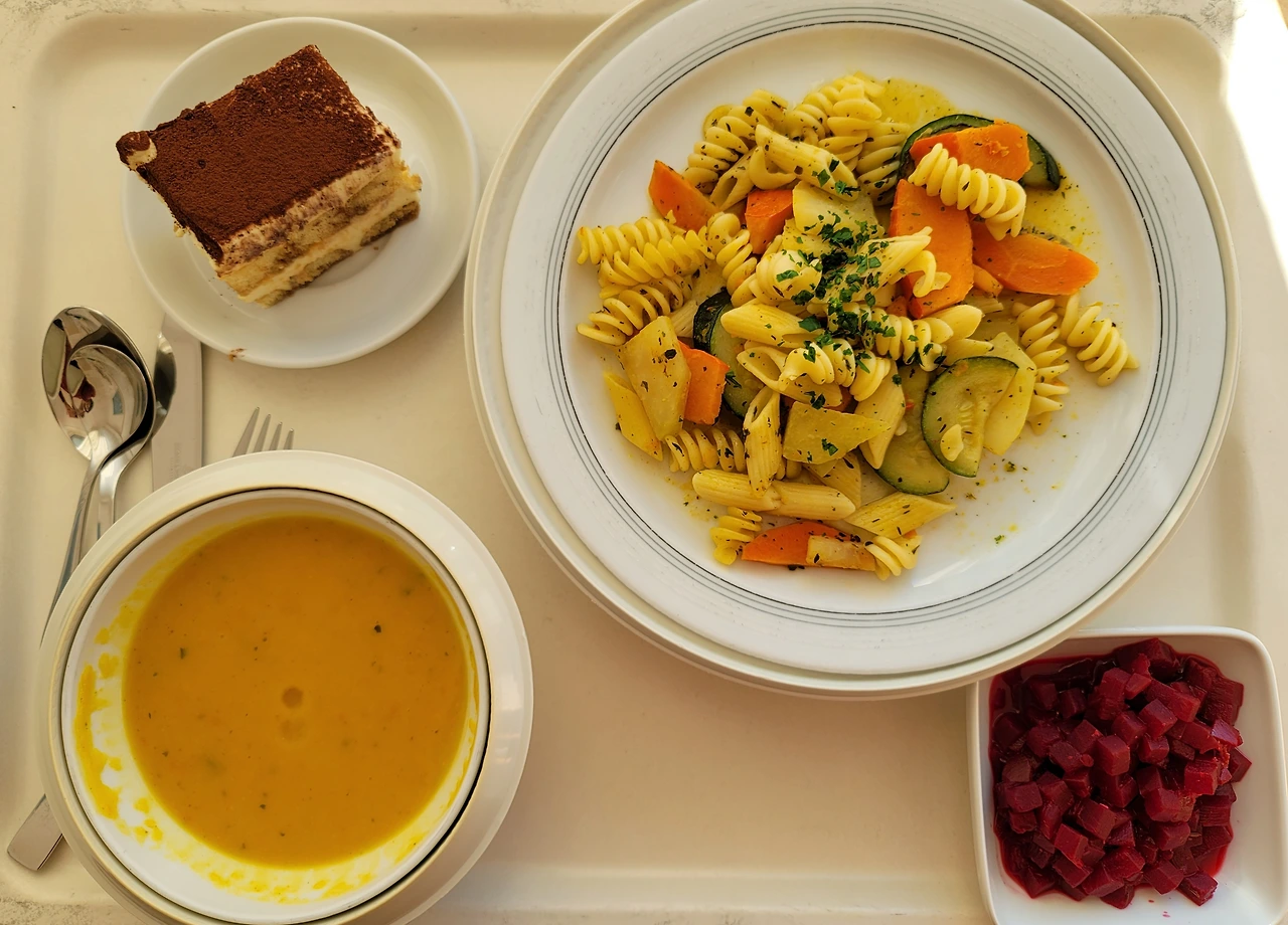 자발적 격리랄까 휴양이랄까, 이곳에 혼자 있자니 삼시 세 끼를 기다리는 즐거움도 큽니다. 주부들의 로망이지요. 주말인 어제와 오늘은 점심이 특히 맛있었어요. 오늘은 야채 파스타와 노란 죽이 세트로 나왔답니다. 당근, 단호박, 주키니, 심지어 콜라비까지. 비트 샐러드의 새콤함과 티라미수의 달콤함은 행복그 자체. 보통 디저트는 잘 안 먹는데 오늘은 일요일이라조금 봐줬어요. 전날 점심도 최고였답니다. 큰 사발에 따뜻한 야채죽. 비주얼은카레죽인데 맛은 야채죽. 따뜻한 밥 공기를 아쉬워하며 한 그릇을 비웠죠. 이번 주에 처음으로 나온 생선 메뉴는 별로였어요. 핑크빛이 입맛을 가시게 했고, 같이 나온 익힌 채소랑 딱딱한 밥 어느 하나 입에 맞는 게 없었거든요. 덕분에 저녁의 빵과 치즈의맛은 배로 즐길 수 있었어요.