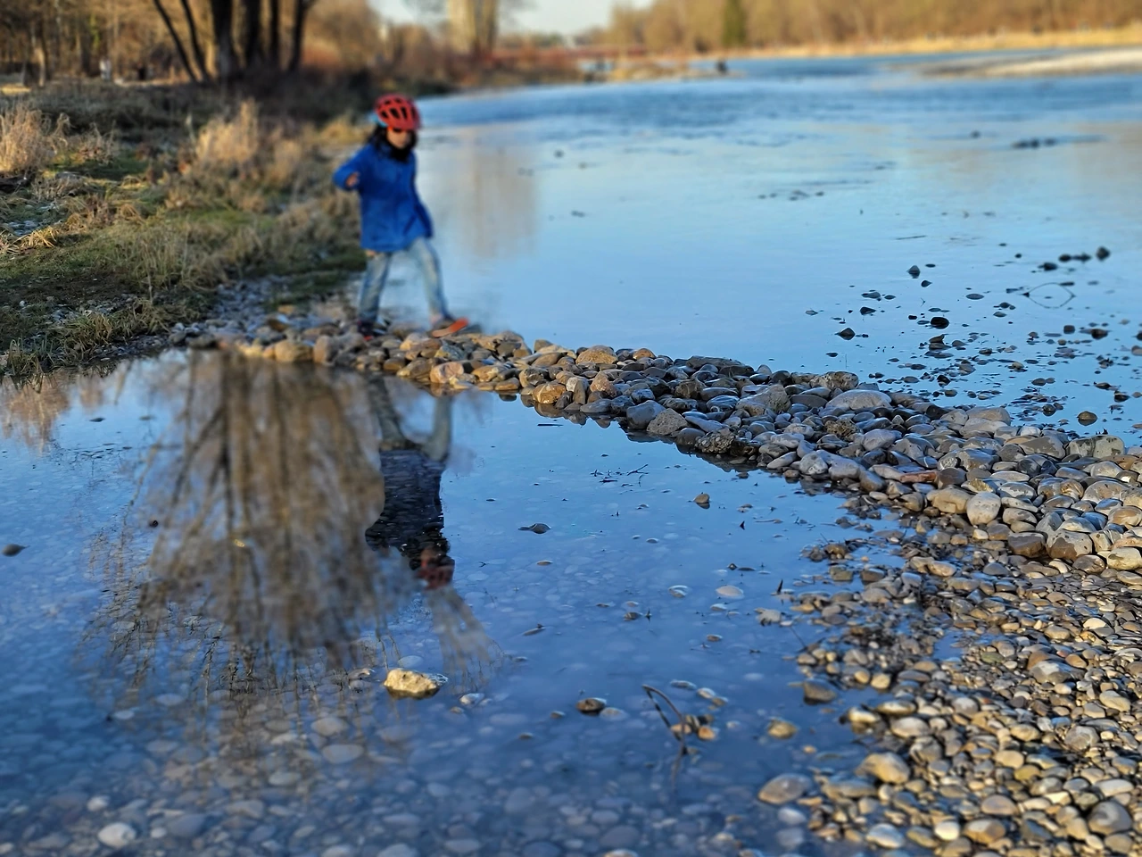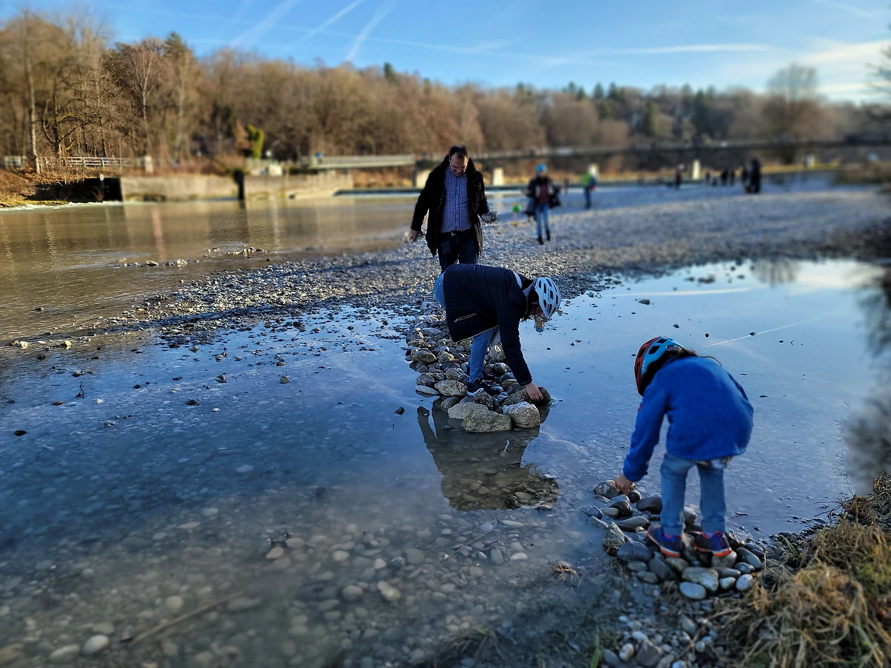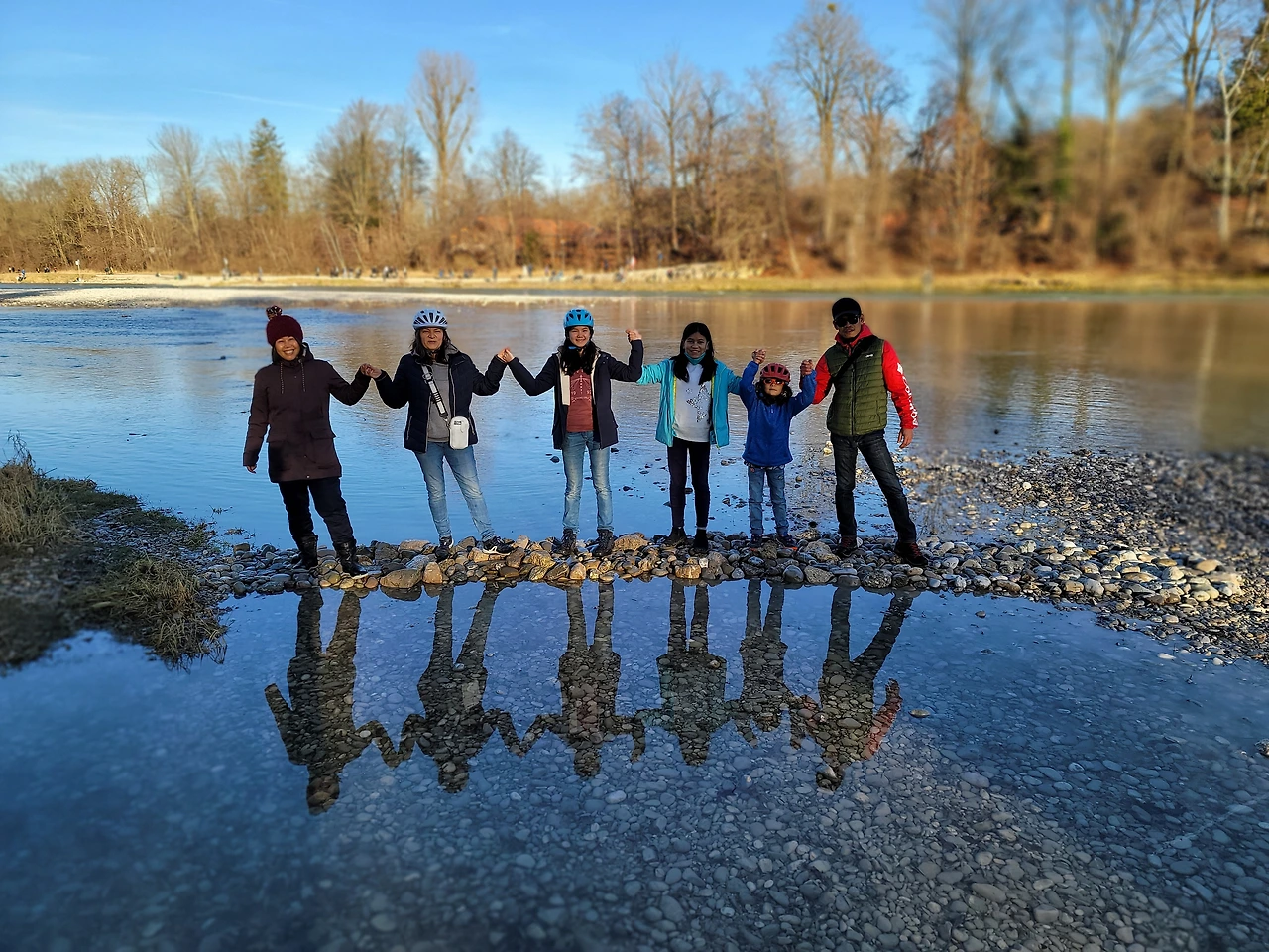 새해 첫날인 다음날도 만났다. 예정에는 없던 일이었다. 날이 너무 좋아 혼자 자전거를 타러 가기 아까웠다.아이와 남편에게도 같이 가자고 한 후 율리아나 생각이 났다. 아이에게 말했다. '율리아나도 같이 가자고 해 봐!' 아이 왈, '율리아나 가족도 자전거 타러 가려고 한대. 다 같이 가자네.' 이렇게 마음이 통하다니.그날 이자르 강변 산책로와 자전거길은 북새통이었다. 제일 느린 내가 앞에서 달리고 우리 아이와 율리아나가 앞뒤로 호위했다.이사벨라와 지미는 열의맨 뒤에서 율리아나의 어린 남동생과 달리고. 동물원을 지나고 다리를 건너 이자르 강변에 자전거를 대고 물놀이도 했다. 새해 첫날 물가에서 물놀이라니. 날씨가 봄날 같았다. 아이들과 돌 쌓기 대회도 하고, 율리아나 남동생이 얕은 물가에 다리를 놓자 두 가족이 열심히 돌을 날라 다리 쌓기도 완성했다. 다리 위에 서서 완공 기념 기념사진도 찍고 돌아오는 길에는 우리 집 앞 이태리 레스토랑 소피아에서 차와 티라미수를 먹었다.