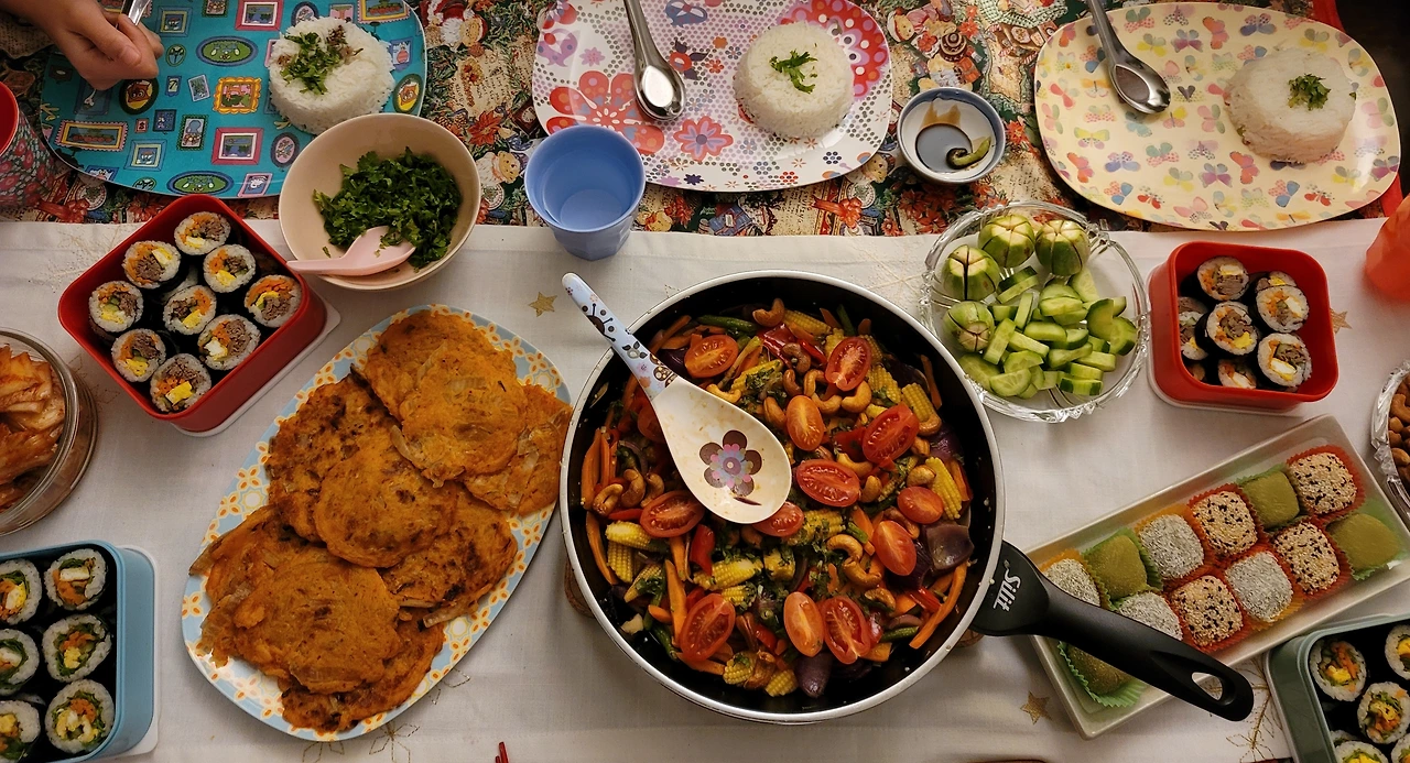 12월이라 하기엔 포근하고 푸근한 밤이었다. 저녁은 일찌감치 먹었다. 채식주의자인 지미를 위해 야채 김밥을, 아이들을 위해서는 불고기 김밥과 특히 전을 좋아하는 율리아나를 위해 김치전을 준비했다. 한국에 다녀온 조카가 가져다준 김치도 들고 갔다. 조카의 엄마는 나와 같은 고향에서 자란 육촌 언니인데, 부지런한 데다 음식 솜씨도 대단하다. 그날 저녁 한국의 육촌 언니가 보내준 금 같은 김치는 한국을 좋아하고 한국 음식과 한국말과 한국 노래도 좋아하고, 휴대폰마저 삼성을 쓰는 지미에게 주는 선물이었다. 남은 김밥은 다음날 계란을 묻혀 부쳐먹으라 했더니 훌륭한 한 끼가 되었다고. 이사벨라는 가정식 태국 음식을 준비했다. 고수 뿌리까지 들어간 담백한 모둠 야채 볶음과 태국 밥이 다였지만 충만한 저녁이었다. 그녀도 나도 심플한 밥상을 좋아해서 서로가더 편했다.
