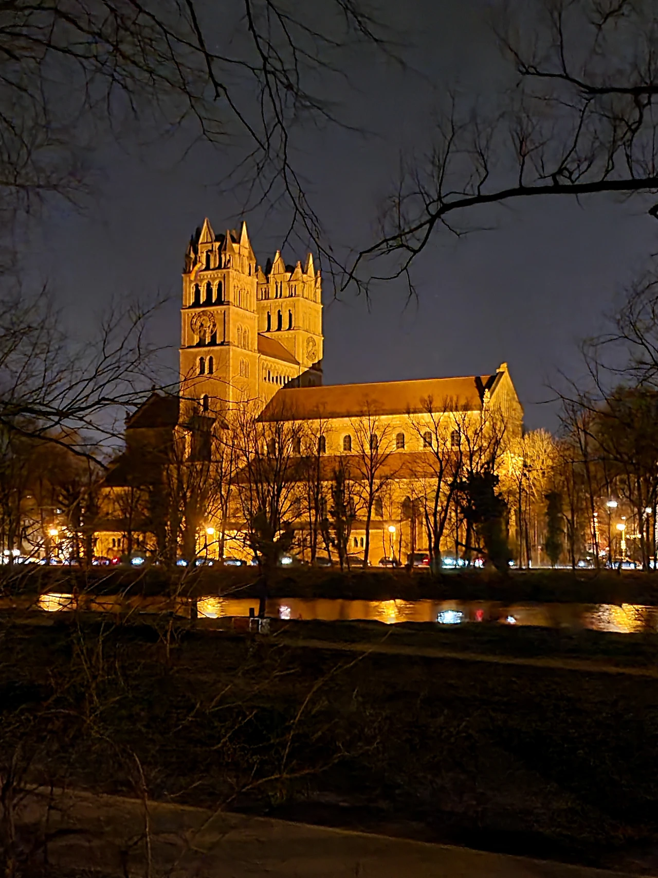 2022. 3. 3일 저녁 뮌헨 이자르 강변의 성당.