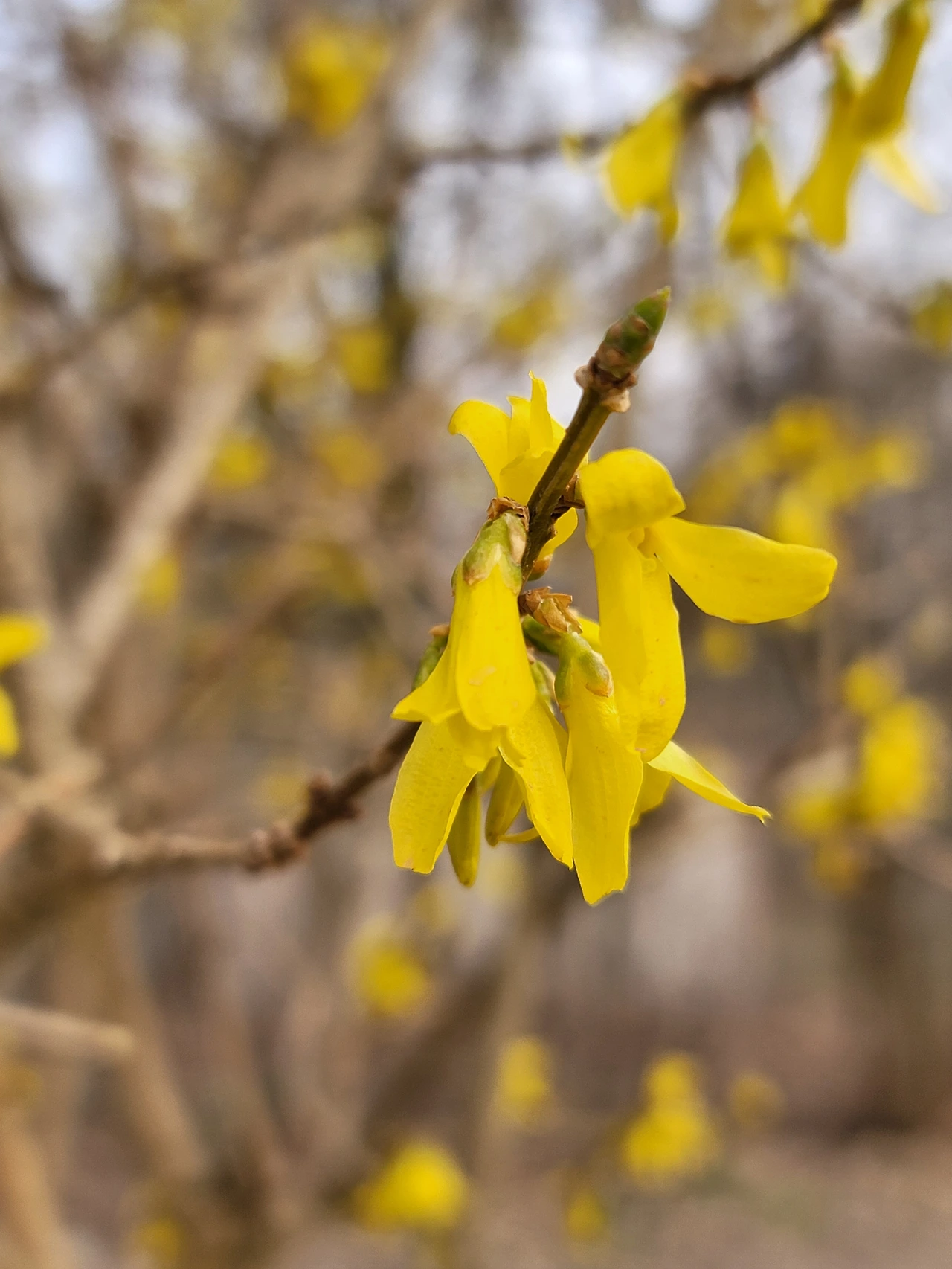 아이들처럼 수줍게 핀 이자르강 산책로의 꽃들. 앞은 개나리. 뒤는 모르겠음.