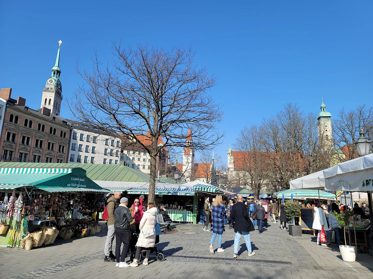 괴테 플라츠에서는 우반을 타고 시내로 갔다. 한글학교에서 지하철로 세 코스면 뮌헨 시청 앞 마리엔 플라츠 역까지 갈 수 있다. 아이와 시청 앞 책방 후겐두벨에도 들렀다. 주말인 데다 날씨마저 좋아서 마리엔 플라츠에도 서점 안에도 사람들로 가득했다. 그렇게 사람이 많은 건 코로나 이후 처음 같았다. 그동안 가라앉아 있던 기분이 업되는 느낌. 독일도 한국도 오미크론 확진자가 폭발적으로 늘고 있지만 일상으로 돌아간 듯한 풍경이 반갑기그지 없었다. 빅투알리엔 마켓에도 봄기운이 만발. 마켓중앙의 비어 가든도 만석. 반가운 봄 아쉬운 봄. 잃어버린 봄 잃고 싶지 않은 봄, 사랑의 봄 사람의 봄. 이러지도 저러지도 못하는 봄 흔들리고 방황하는 봄. 그게 봄이지, 그래야 봄이지. 정말 봄이 왔나 보다.