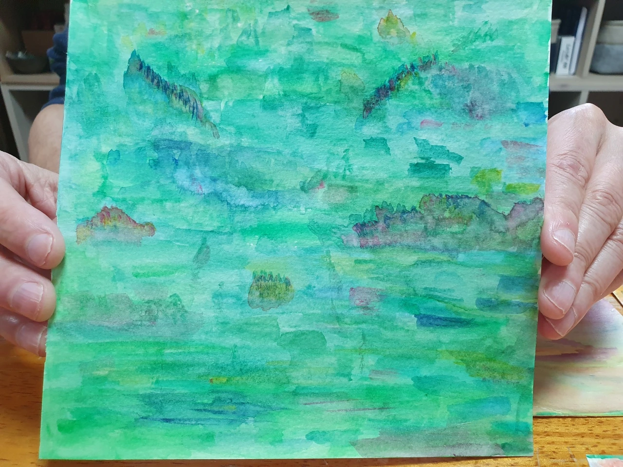 솔직히 형부가 저렇게 그림에 재능이 있는 줄 몰랐어요. 첫 그림을 봤는데 인정! 리스펙! 이런 말이 튀어나오더라고요. 일단 어둡지 않아서 좋아요. 맑고 밝잖아요. 보는데 기분이 좋아져요. 마음이 정화되는 기분. 영혼의 샤워. 그런 기분요. 그날부터 제게 형부는 Meditation Artist 가 되었답니다. 그림을 잘 모르는 제가 봐도 흔히 말하는 배운 티가 안 나잖아요. 젊을 때 화랑을 운영한 적이 있다는 J 언니. 그림 보는 안목이 탁월한 J 언니가 감탄할 때 역시, 했죠. J 언니와 제가 단톡방에서 동시에 Meditation! Artist!라고 외쳤으니까요. 형부의 그림 속에서 삼월과 사월이 초록과 핑크 옷을 입고 왈츠를 추네요. 깃털처럼 가볍고 봄햇살처럼 다정한 몸놀림으로요.