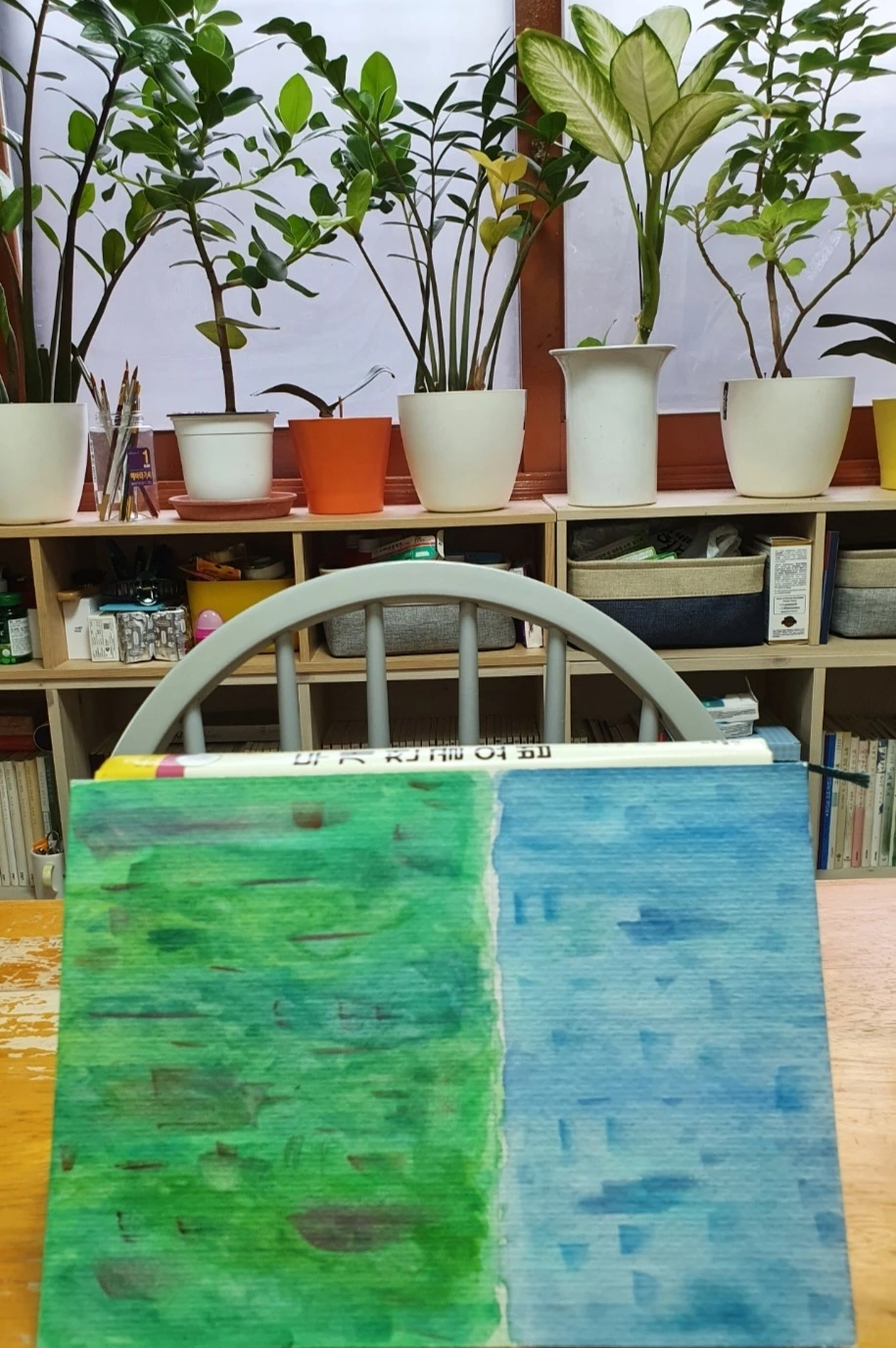 형부의 첫 그림을 기억합니다. 제겐 무척 인상적이었어요. 신선했고 색채감이 돋보였어요. 우리가 이런 거 잘 못하지 않나요. 자유분방한 터치 같은 거. 잘 안 해봐서 어렵잖아요. 배울 수도 없고 모방이나 카피도 쉽지 않죠. 자유로운 사고와 자연스러운 붓놀림의 결과니까요. 나중에 들었는데 저의 감탄과 탄성에 형부가 보인 반응은 한 마디로 시큰둥. 뭐가 대단하다고 호들갑? 그랬대요. 그 이후로도 이모부님은 매일 작품을 쏟아내고 계신다는 후문이에요. 저는 맘속으로 형부의 그림들을 찜했죠. 언젠가 저도 책 한 권쯤 낼 날이 오겠죠. 그때 제가 찍은 사진들과 형부의 그림들을 같이 싣고 싶거든요. 제 글에 색을 입히는 작업이 되지 않을까싶어요.