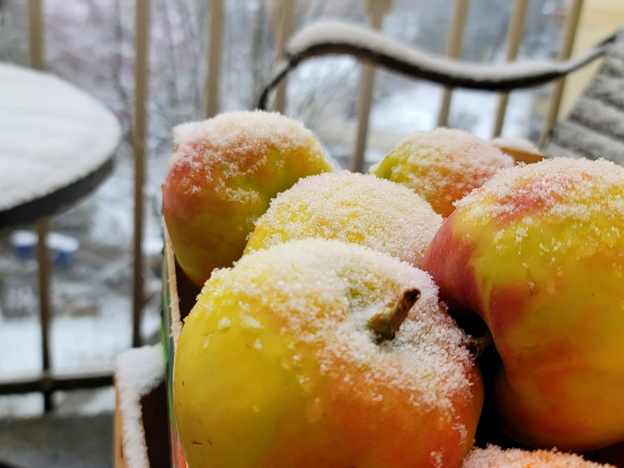 우리집 발코니의 사과와 꽃들. 이틀만에 눈이 소복하게 쌓인 들판. 오른쪽부터 알리시아, 친구 율리아나, 율리아나 남동생 제이슨(맨 아래 사진은 by 율리아나 아빠 지미Jimmy).