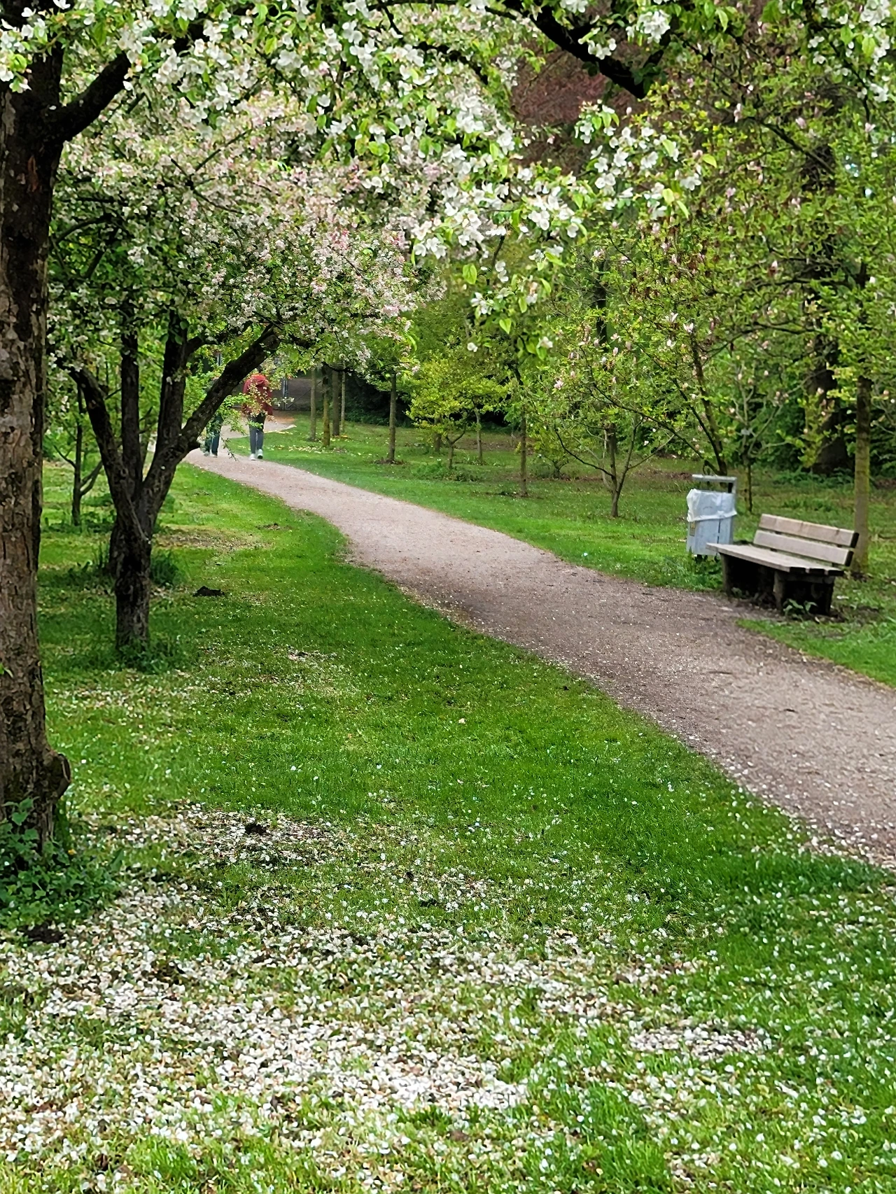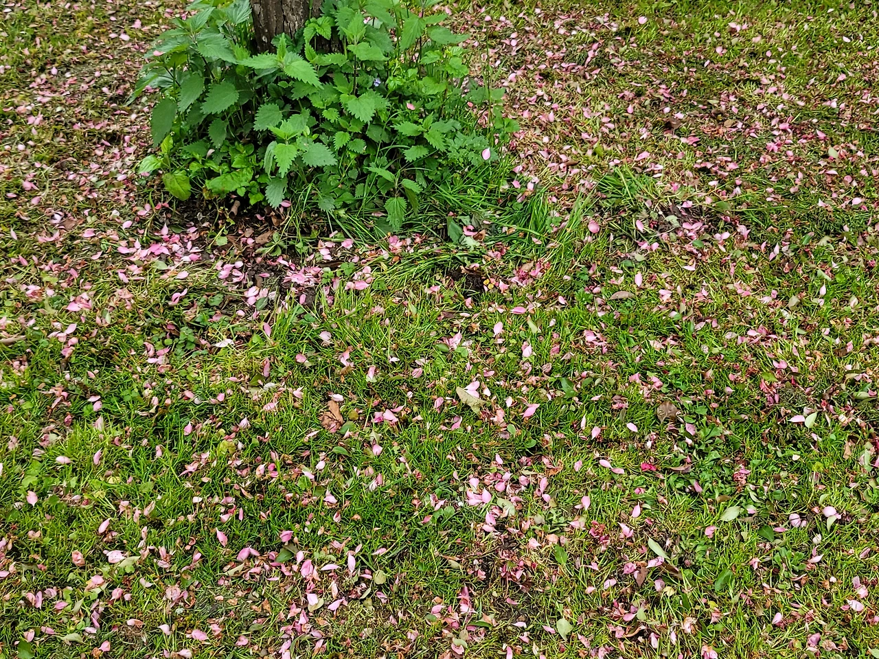5월 어느 날. 보슬비 내리다 그친 늦은 오후였다. 로젠 가르텐은 텅 비어 사방이 고요한데. 진분홍, 핑크빛, 옅은 분홍, 연보라, 진보라, 청보라, 흰색까지 갖가지 색으로 옷을 갈아입은 라일락의 향연을 즐긴 사람은 나를 포함한 산책자들 몇 명뿐. 하이라이트는 라일락 군락 옆에서 촉촉하게 젖은 잔디 위로 떨어진 꽃잎들로 수놓은 수채화를 감상하던 일. 꽃은 떨어져도 위엄을 잃지 않더라는 것.