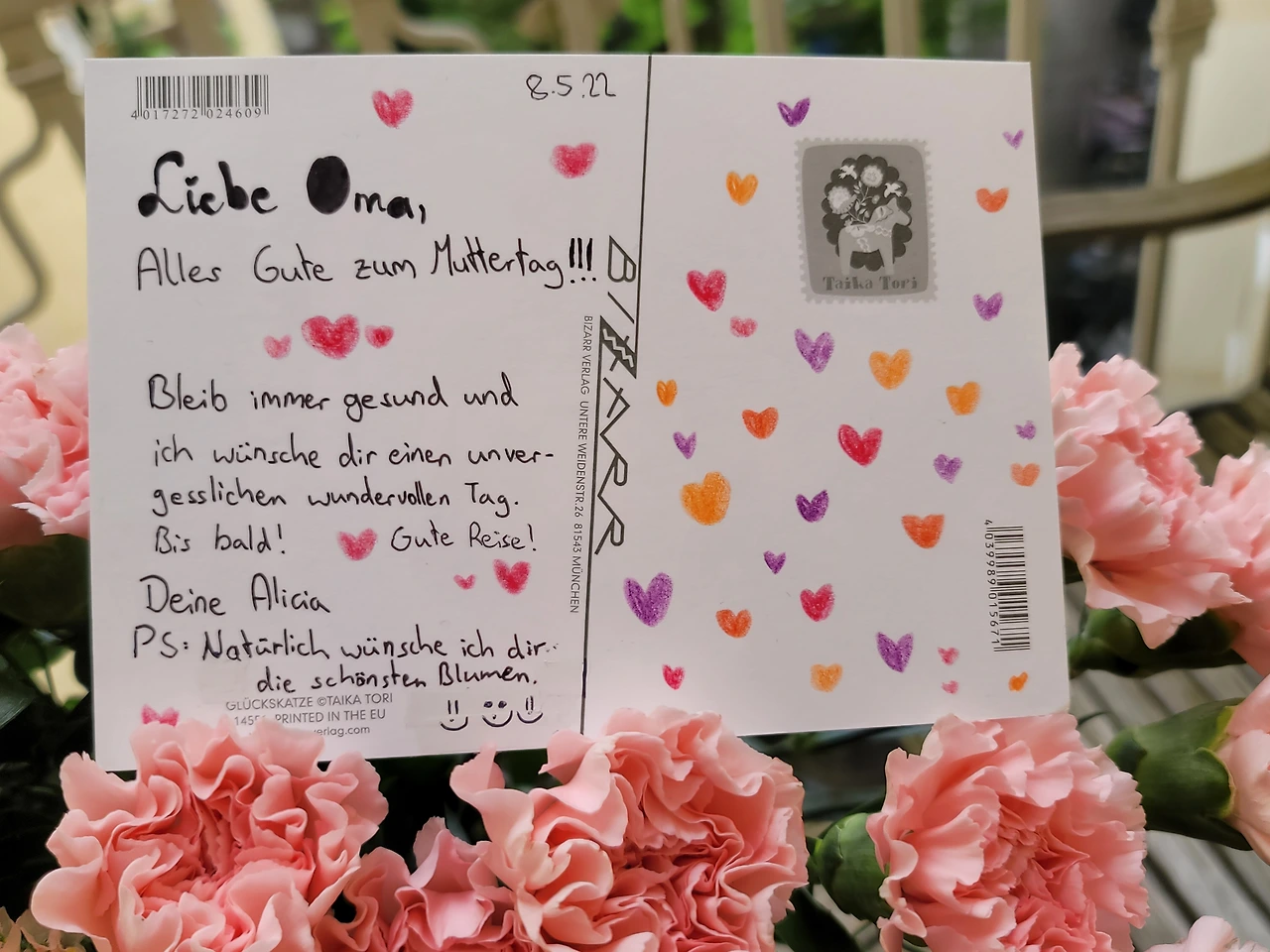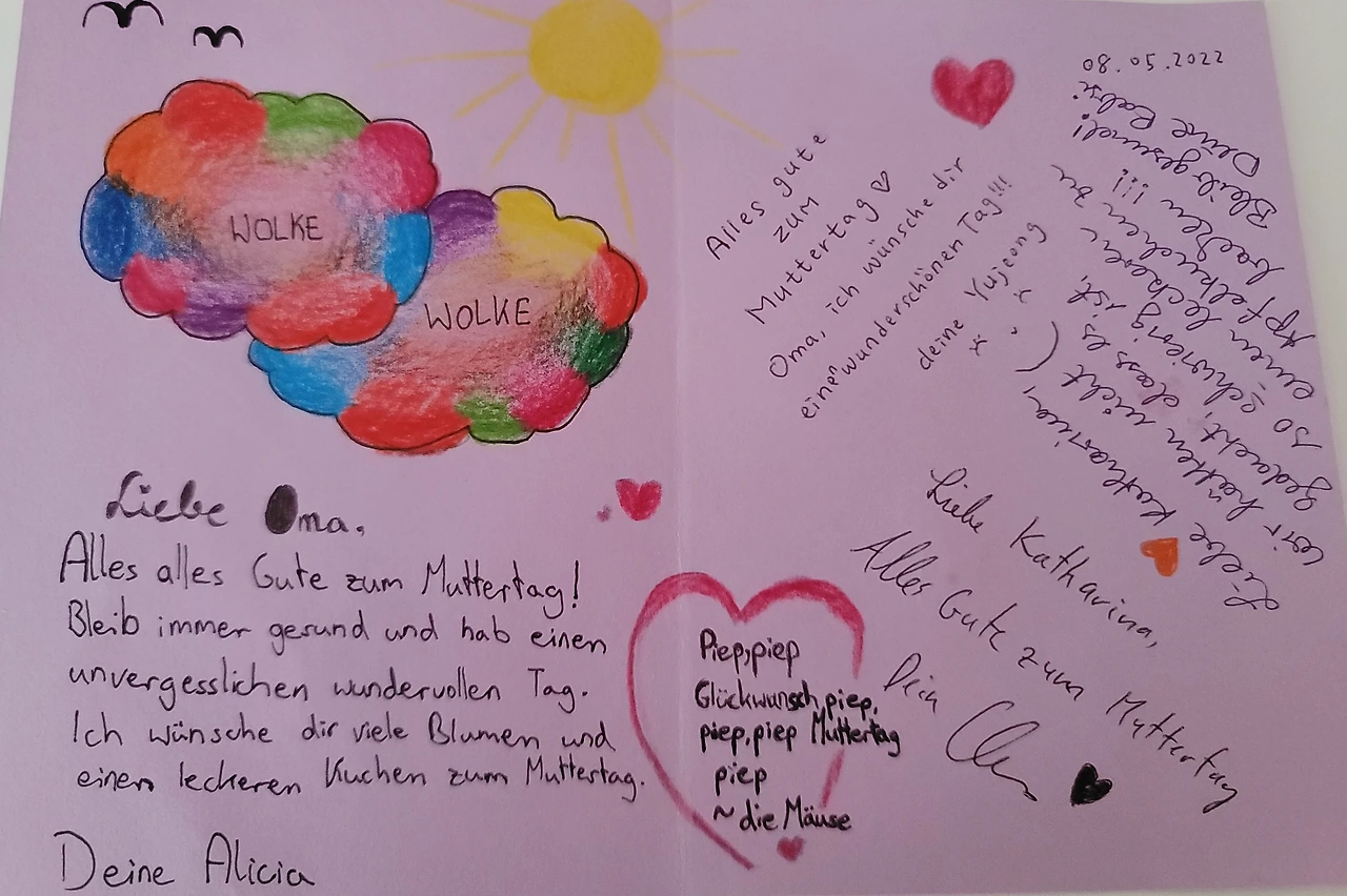 올해 어머니날엔 유난히 힐더가드 어머니가 마음에 걸렸다. 가장 좋은 시나리오는 토요일 날 한글학교를 마치고 레겐스부르크로 가서 어머니와 저녁을 먹고 하룻밤 묵는다. 다음날 어머니날을 축하드리고 아침 먹고 출발하는 것. 카타리나 어머니께는 오후에 가면 되니까. 남편이 시간이 안 된다 했다. 두 번째 시나리오는 내가 일요일 아침 일찍 기차로 가서 역에서 어머니를 만나 꽃을 안겨드리고 차를 마시고 돌아오는 것. 둘 다 못했다. 왓츠앱으로 긴 메시지를 보내드리고 아이는 할머니께 카드를 썼다. 한국 단지에 카네이션을 담고 꽃 속에 카드를 놓고 인증샷을 찍었다. 카드는 다음날 우편으로 보내 드림. 카네이션의 의미도 알려드렸다. 어머니가 기뻐하셨다.