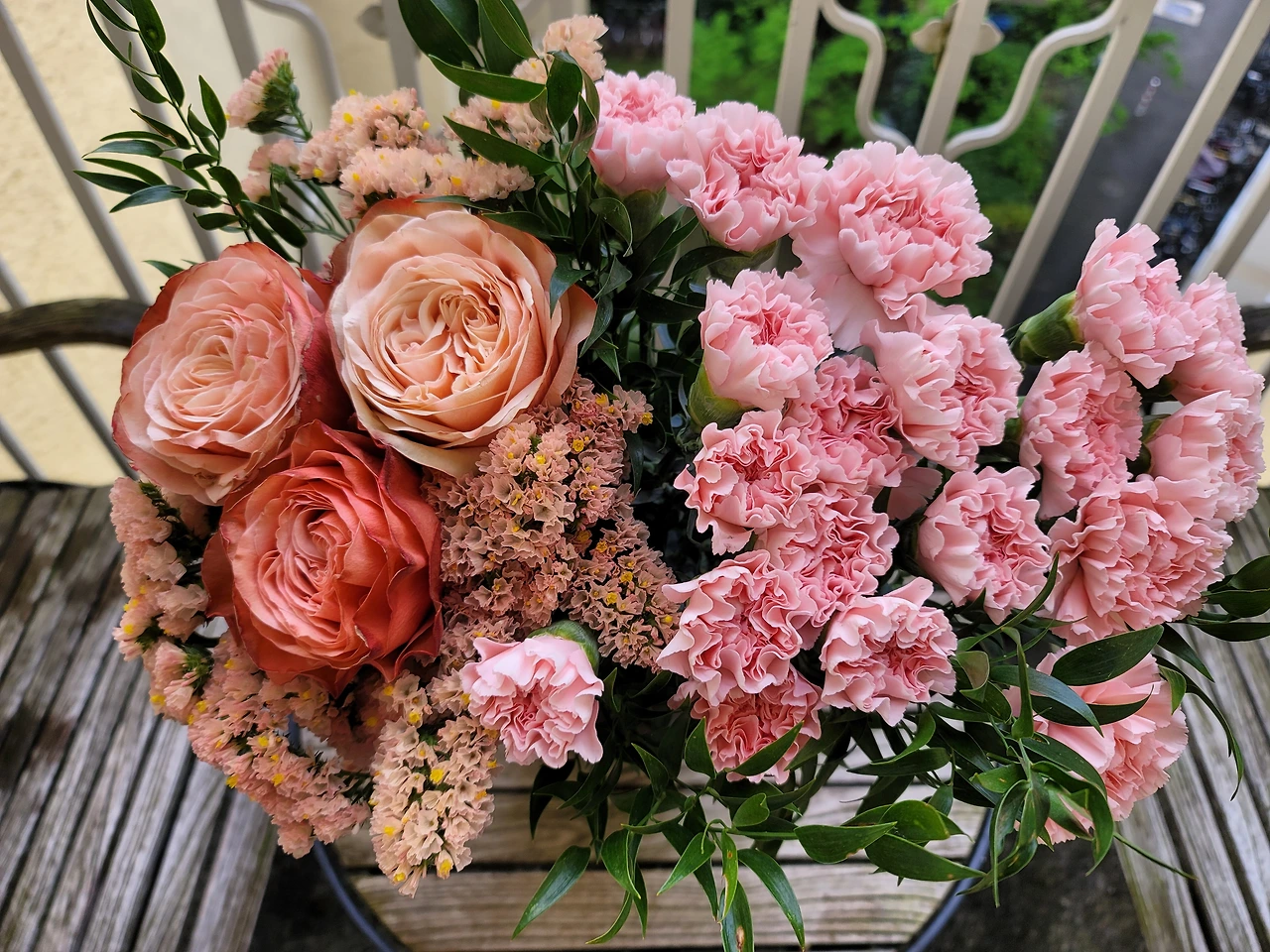 그러니 어머니날만큼 꽃집이 호황을 누리는 날도 드물겠다. 어떻게 아느냐면 나 역시 전날 토요일에 꽃집 순례를 하기 때문이다. 가장 쉬운 방법은 빅투알리엔 마켓으로 가는 것. 빅투알리엔 마켓에는 큰 꽃집이 네 곳이 있다. 꽃집들마다 줄이 길다. 문이 없이 오픈된 형태라서 줄을 안 서고 일단 꽃부터 살핀다. 내가 원하는 꽃이 있나 없나. 어머니들께 선물하기 가장 무난한 꽃은 뭘까? 장미다. 탐스런 장미들. 온갖 색이 다 있다. 구색을 맞춰 작은 꽃들이나 초록 가지를 곁들이면 끝. 옛날에 우리도 무슨 꽃을 사든 안개꽃을 곁들였지. 그날의 미션은 장미와 카네이션이었다. 친어머니이신 카타리나 어머니께는 전통적인 장미를, 새어머니이신 힐더가드 어머니께는 카네이션을 선물하려고. 독일은 카네이션이 어머니날의 상징은 아니지만. 찾아뵙지도 못하면서 꽃은 왜? 그냥. 사진으로 보내드리려고. 일요일 하루가 너무 외롭지 않으시도록.