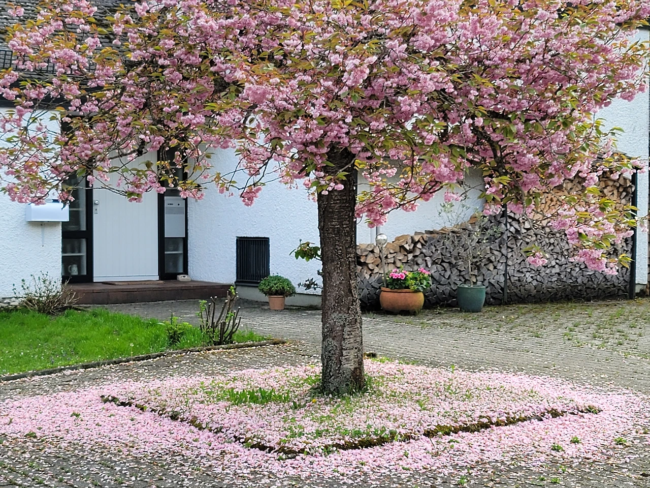 카타리나 어머니의 정원. 가운데 벚꽃나무만 이웃집.