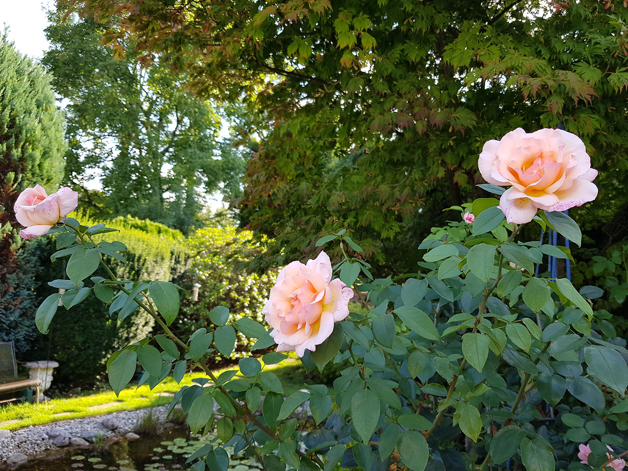 경이로운 것은 시어머니의 부엌과 욕실만이 아니다. 나의 시어머니 카타리나의 정원 얘기다. 어머니의 마법의 손은 정원에서도 쉬는 법이 없다. 집보다 몇 배로 큰 정원을 혼자 관리하시는데 올해는 어머니의 장미가 한 발 늦게 피었다. 지난 번 방문 때만 해도 봉오리조차 올라오지 않았는데. 어머니의 자랑인 아메리칸 뷰티는 해마다 기대를 저버리는 법이 없다. 언제 봐도 우아하고 아름답다. 젊은 날 어머니의 모습 같단다. 양아버지가 늘 하시는 말씀이다. 재혼하실 때 어머니 나이가 마흔이셨는데도. 해마다 여름이면 탄성 없이는 어머니의 장미를 향해 셔트를 누를 수가 없다.
