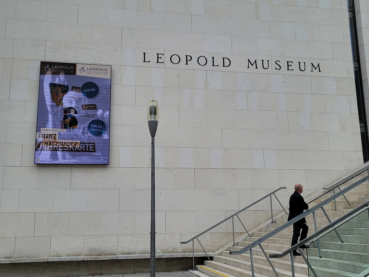 레오폴드 뮤지엄은 구시가지 칼스 플라츠 근처에 있었다. 첫 뮤지엄 방문은 아이와 둘만 갔다. 남편은 호텔방에서 전화 콘퍼런스가 있으시다고. 아내의 상심을 고려해서 당일 아침까지 언급도 안 하시다가 호텔에서 조식을 먹고 기분 좋게 호텔방으로 올라와 외출 준비를 하는데 통보를 하시네. 맞긴 하다. 출발도 하기 전에 미리 기분 나쁠 이유야 없지. 대망의 하이라이트는 셋째 날. 오후 출발인데 본인은 새벽에 뮌헨으로 가셔야 한다고. 이건 미리 알려주었다. 체크인 때 셋째 날 조식을 두 명만 예약해야 하니까. 아쉽지만 바쁜데 따라와 주신 게 어딘가. 대신 구시가지에서 점심을 먹고 벨베데레 궁전과 클림트 입체 그림전을 같이 보는 걸로 합의를 했다. 우반을 한번 갈아타고 칼스 플라츠로 가는 대신 트람을 타고 조금 걷기로 했다. 이번 여행에서 길 찾기로 가장 편했던 건 호텔 체크인 카운터에 비치된 1장짜리 비엔나 시티맵 Vienna City Map과 구글 지도였다. 비엔나 시티맵은 앞면은 구시가지, 뒷면은 비엔나 시 전체와 대중교통 지도를 한눈에 볼 수 있어 늘 들고 다녔다.