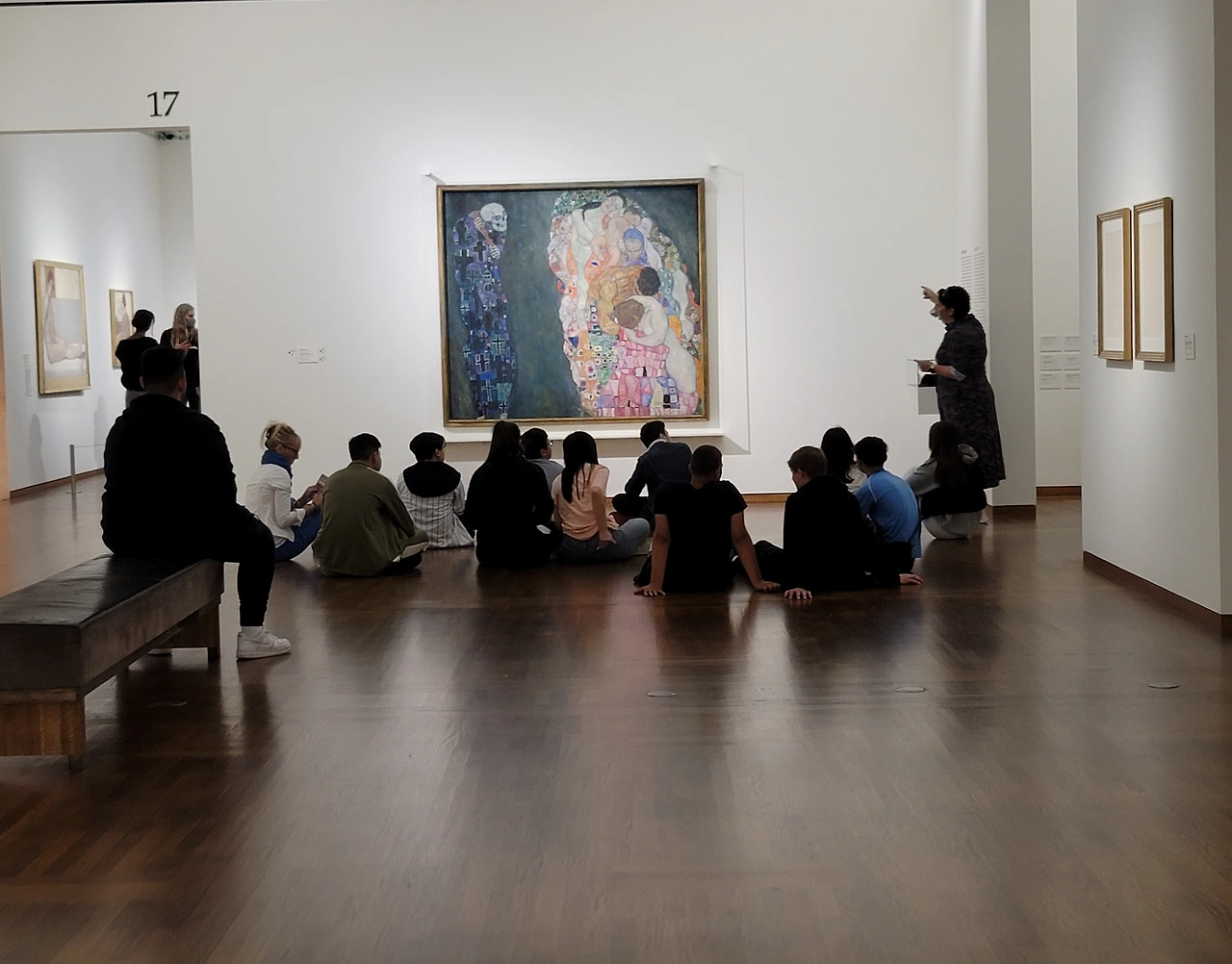 레오폴드 뮤지엄에는 에곤 실레의 그림이 있다. 표를 사고 백팩과 얇은 겉옷과 우산을 락커에 넣고 입구에 선 가드에게 어떻게 관람할지 문의하니 4층에서 아래로 내려오란다. 4층과 3층에 있을 건 다 있다. 에곤 실레도 클림트도. 에곤 실레의 자화상들. 젊은 나이에 전쟁으로 요절하지만 않았더라면 엄청난 작품을 남겼을 것 같은 화가. 그 이른 나이에도 저토록 많은 작품을 남기고 간 걸 보면. 가장 아쉬운 두 화가 중 한 명인데, 다른 한 명은 독일의 청기사파 화가 아우구스트 막케다. 레오폴드 뮤지엄에서 보고 싶은 작품은 단 하나였다. 클림트의 <죽음과 삶 Tod und Leben(Death and Life)>. 죽음과 삶이라니. 삶과 죽음도 아니고. 빈 지도의 뮤지엄 광고란에서 처음 보고 반했다. 아기를 안고 눈을 감고 있는 여인의 평온함. 아기는 소녀로 여인으로 노파로 변해 가겠지. 가운데를 장식하는 건 근육질의 남성과 여인의 건강하고 눈부신 육체. 그 삶을 둘러싼 화려하고 영롱한 빛깔들. 또다른 세 여인의 얼굴도 보인다. 기대와 고통과 고요한 기다림 혹은 체념의 베일이 드리워진. 왼편에 비켜 있는 죽음의 모습도 생각보다 살벌하지 않다. 죽음의 사자의 양손에 든 빨간 방망이마저 위협적이지 않을 정도. 레오폴드 뮤지엄의 팸플릿을 장식하는 것도 클림트의 이 그림과 에곤 실레의 자화상이었다.
