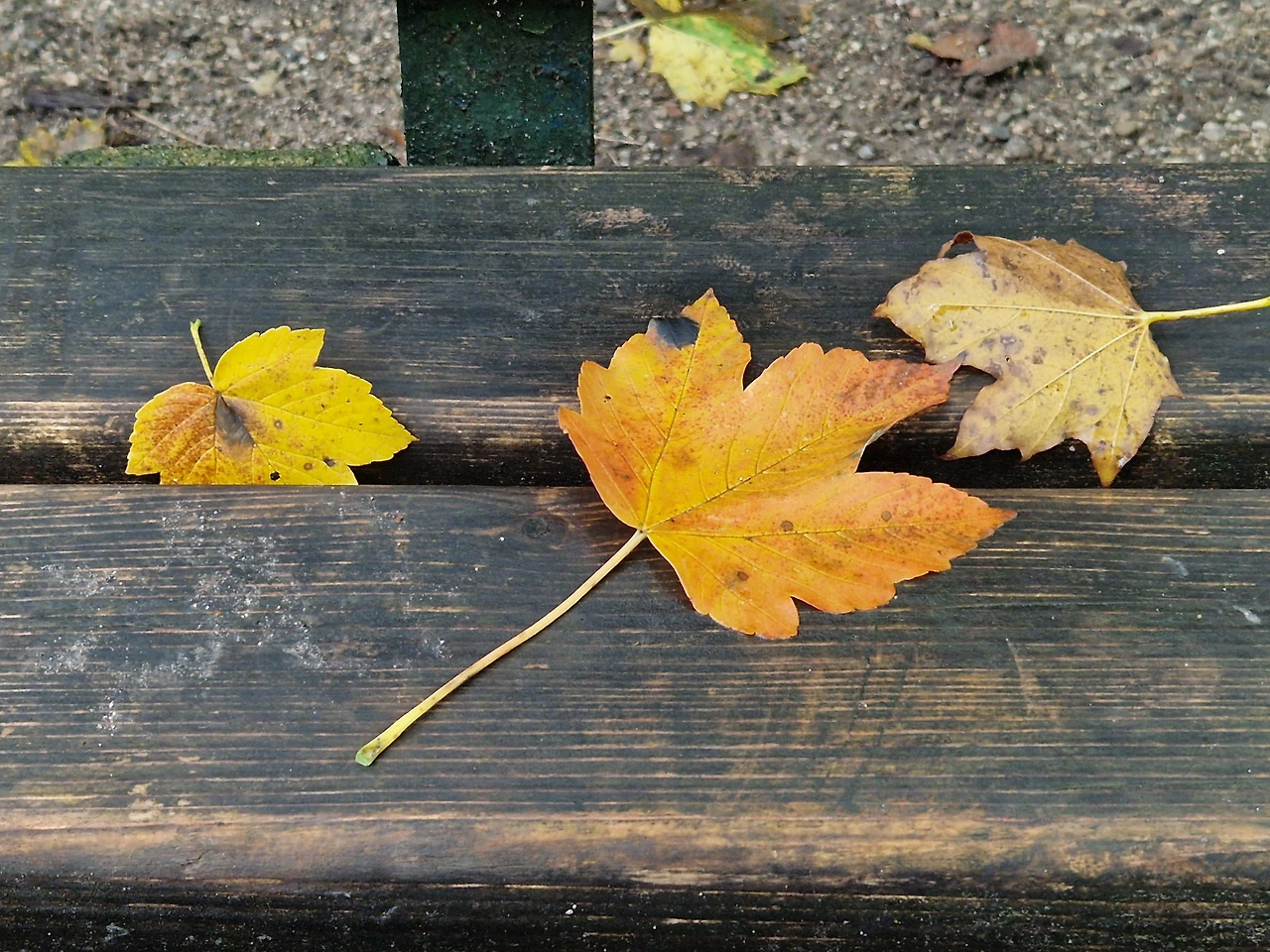 비 온 뒤 산책길에 떨어지던 9월의 나뭇잎.