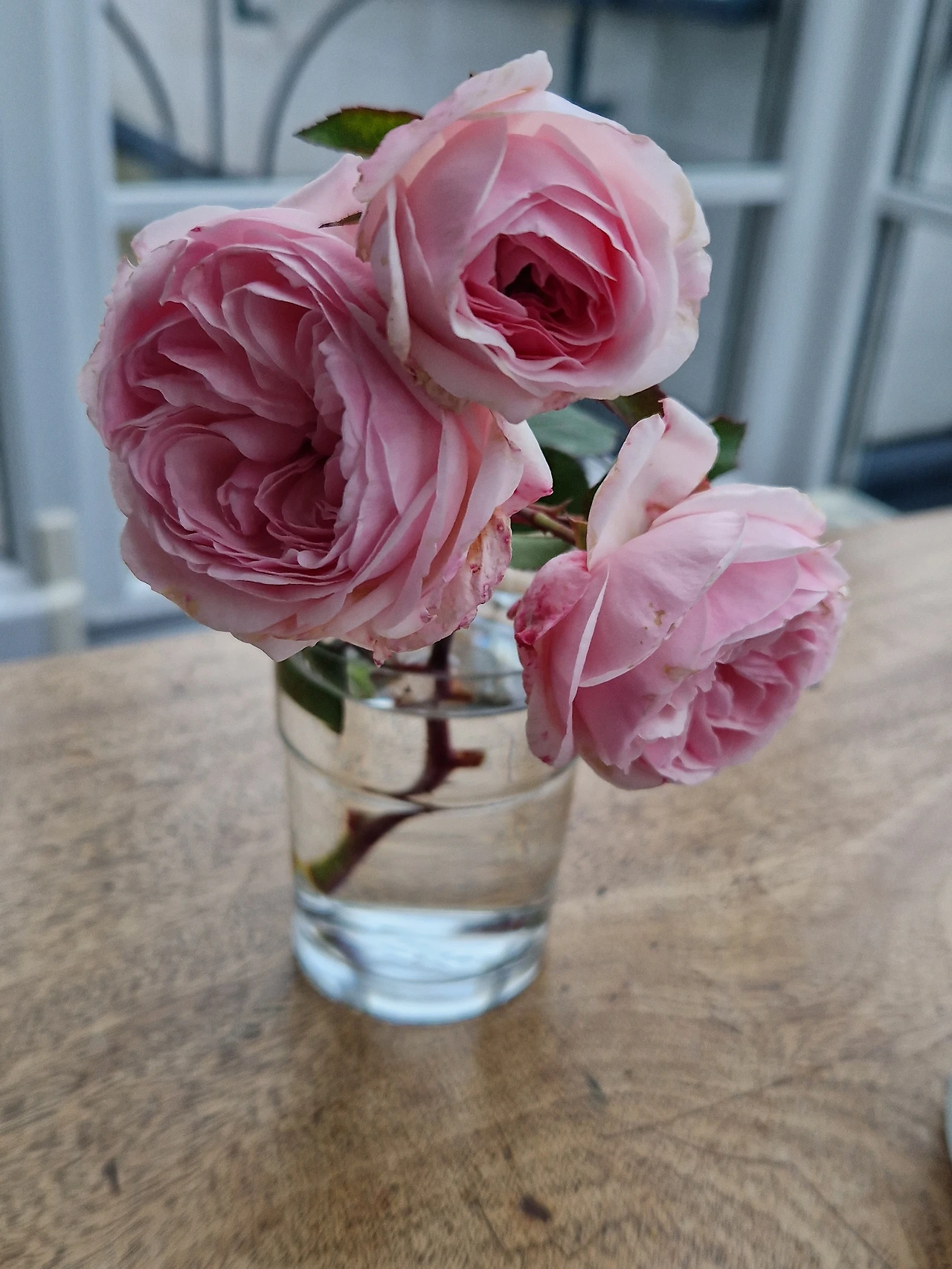 차를 마신 전시장의 작품과 11월의 장미 세 송이.