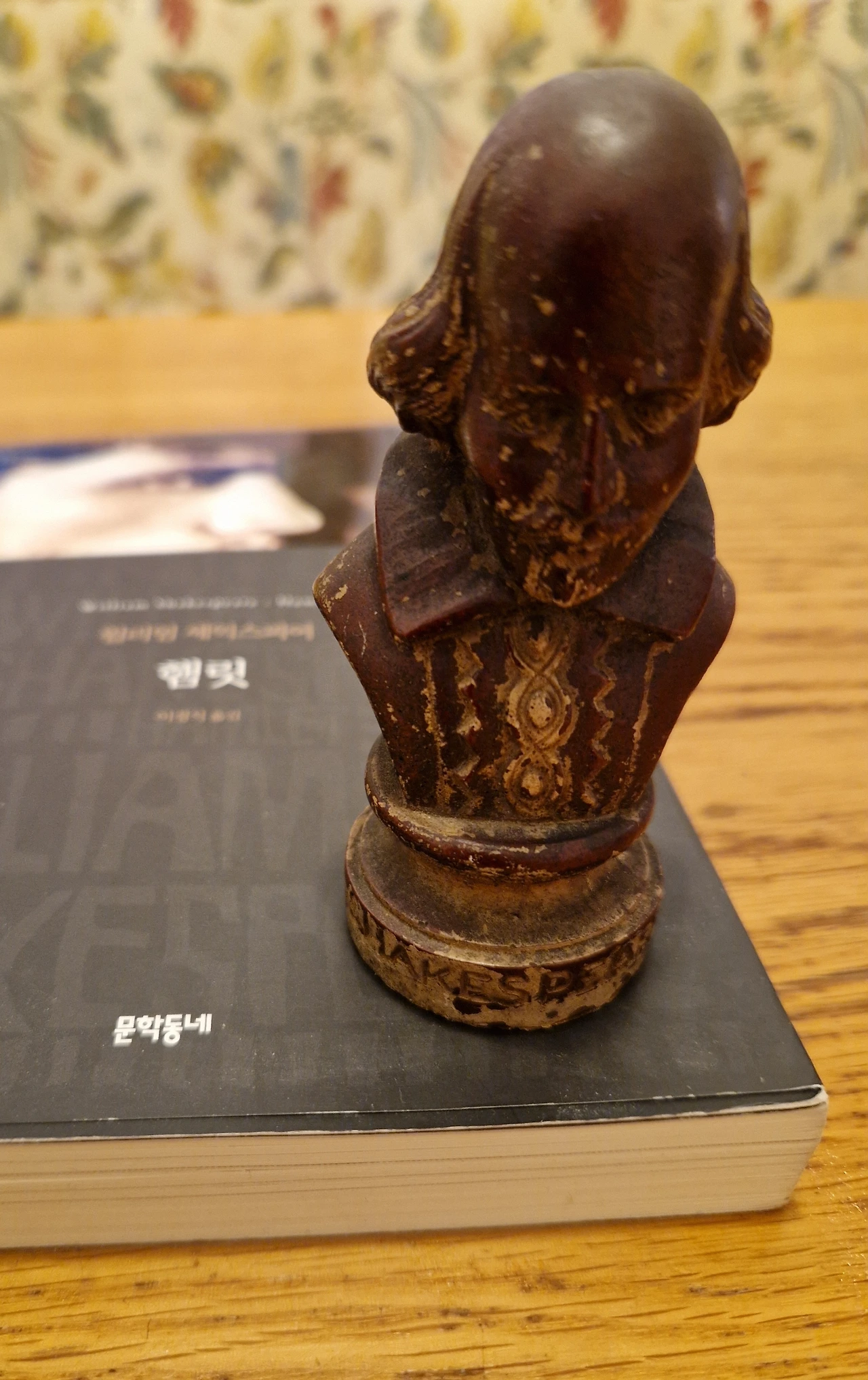간호사 Frau 하글도 오늘 처음 만났다. 내 입원실 창가에 둔 책과 조각상을 보고 나에게 직업을 물어봐도 되냐고 물었다. 직업요? 한국 식품점에서 일한다고 했다. 혹시 문학 쪽에 관심이 많냐고 해서 그렇다고 했다. 창가에 햄릿 책 위에 올려둔 조각상을 궁금해해서 셰익스피어와 세르반테스(돈키호테)라고 말해주었다. 한글학교 학예회 때 가져갈 쟁반을 사러 세컨드 핸드 샵에 갔다가 발견한 보물들이다. 잘 보이게 창가에 책과 함께 두니 볼 때마다 기분이 좋아진다. 말하자면 플라세보 효과 같은 것. 괜히 독서빨이 잘 받는 것 같은. 셰익스피어는 아래쪽에 이름이 새겨져 있고, 딱 봐도 셰익스피어다. 돈키호테에는 어떤 이름이나 힌트도 없다. 돈키호테처럼 깡마른 남자가 책을 들고 서 있다. 발 밑에는 성경책. 책벌레였던 돈키호테를 보는 것 같다. 아님 말고. 나만의 돈키호테라는데 누가 뭐람.