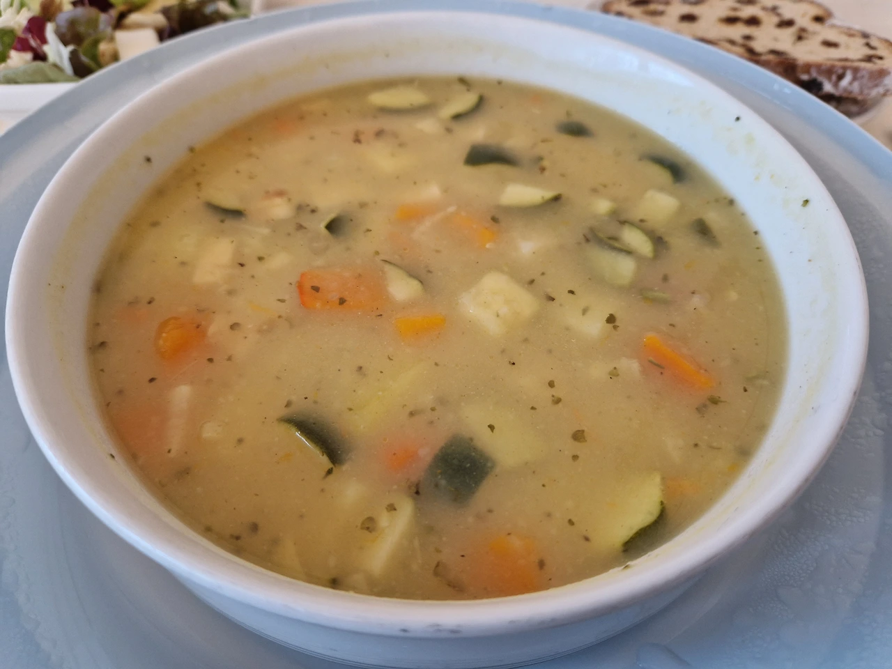 둘째날 아침/점심/저녁(위). 내가 가장 좋아하는 건 이런 아침빵과 점심 수프다(가운데). 대접 사이즈라는 게 젤 마음에 든다! 세째날 아침/점심/저녁(아래).