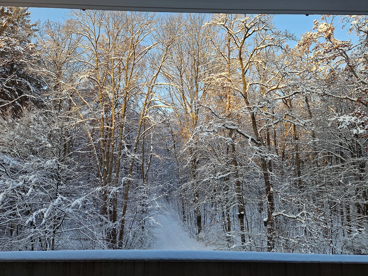 자연치유센터에 요양을 온 지 사흘째 아침. 눈이 그치고 해가 나왔다. 흰 눈꽃 가득한 나뭇가지 사이로 푸른 하늘이 보였다. 산책을 가는 숲 속은 발이 푹푹 빠질 정도. 눈과 함께 최고의 힐링 휴가를 보내는 중이다. 올해도 화이트 크리스마스는 기대를 접어야겠다. 항상 이 무렵 눈이 내리고 나면 성탄절에는 안 내린다는 걸 뮌헨에 사는 사람이라면 누구나 안다. 그래도 모르는 일. 다만 오늘의 눈을 즐기면 될 일.