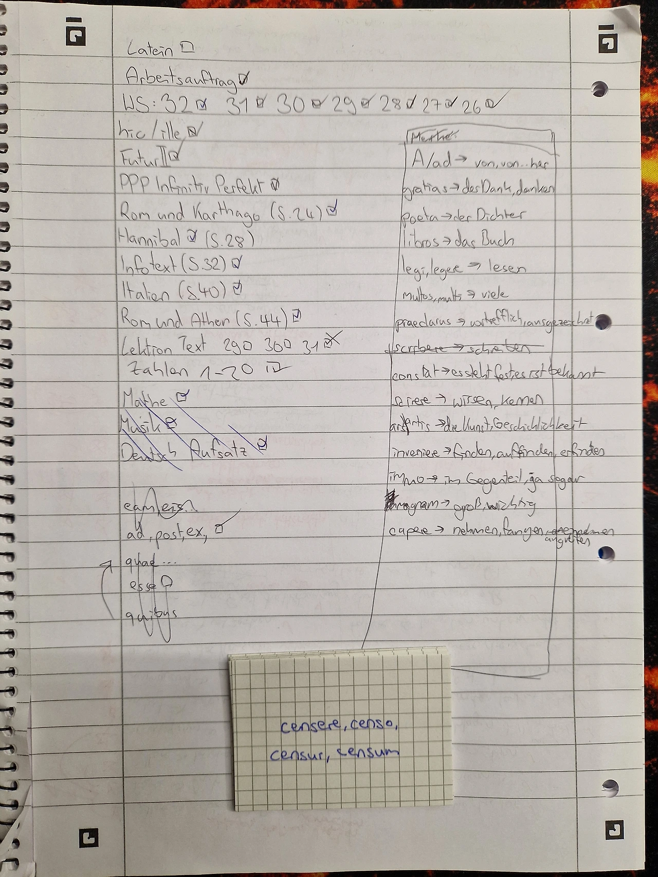 우리에게 가장 핫한 공통 주제인 사춘기가 끝나자 이번에는 라틴어가 도마 위로 올라왔다. 다시 한번 안이 치를 떨었고. 자기도 김나지움 때 라틴어 때문에 피를 봤다고. 그래서 오스카에겐 프랑스어를 고르게 했는데, 문제는 오스카도 프랑스어에 치를 떨고 있는 중 같았다. 오늘은 우리 아이의 라틴어 중간고사날인데, 고사를 지낼 일은 없어 보인다. 열심히 하는 걸 봤기 때문이다(어젯밤에도 책상 위에 놓인 체크 리스트를 슬쩍 보았다. 아이가 직접 만든 건데 모든 항목에 체크가 되어 있었다!). 오늘 아침에도 책상에 앉아 있던데 정말 드문 경우였다.
