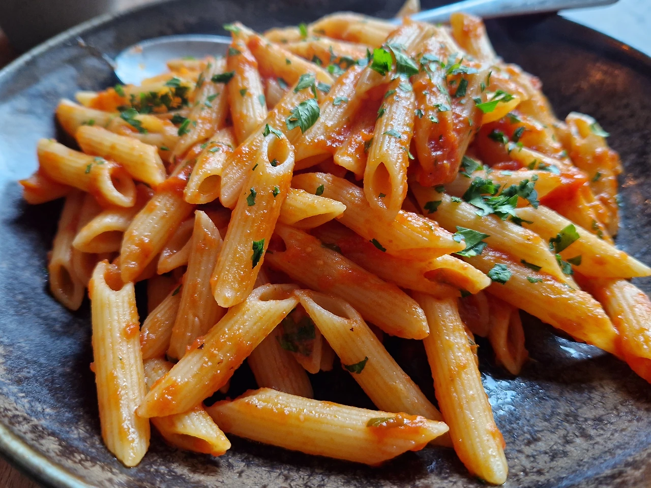 안은 감자 뇨끼. 나는 매운 파스타 뻰네 아라비아따.