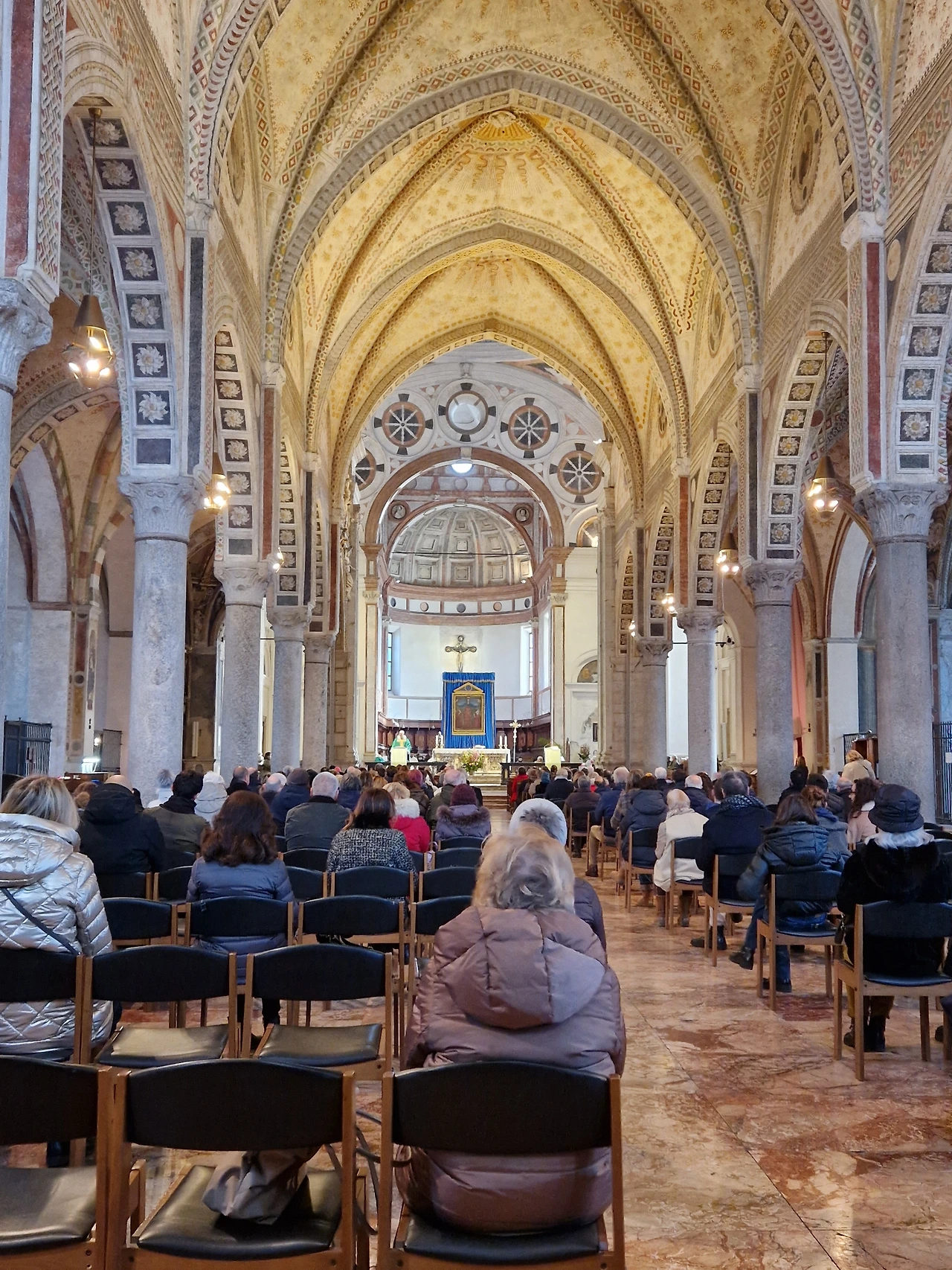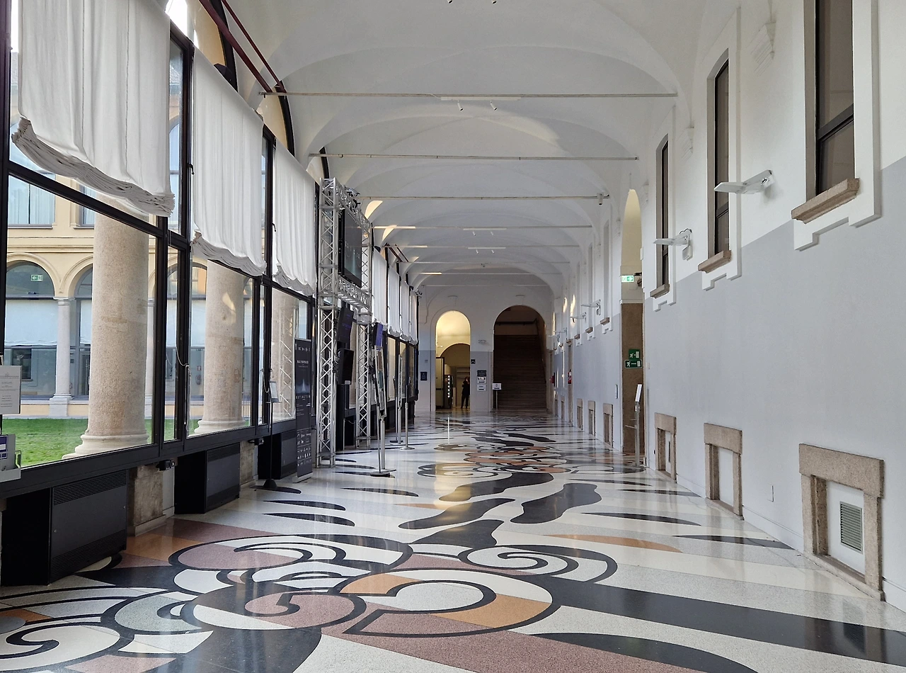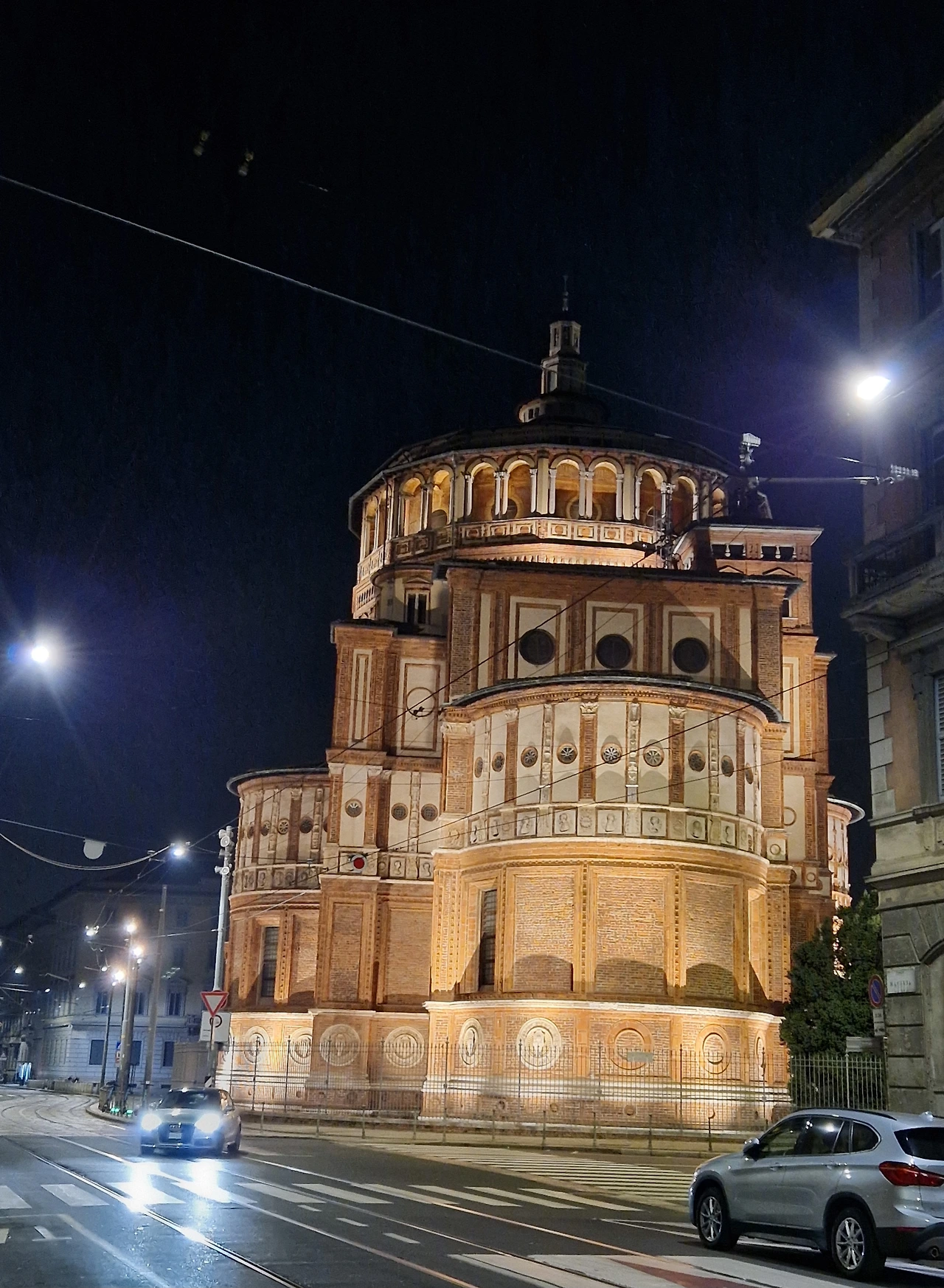알고 그런 건 아니지만, 내가 예약한 밀라노 호텔 건너편에는 유명한 산타 마리아 델라 그라치에 성당도 있었다. 아는 분은 아시겠지만, 이 성당이 왜 유명하냐면 최후의 만찬 그림이 있기 때문이다. 레오나르도 다 빈치(1452-1519)의 진짜 그림. 이 작품은 산타 마리아 수도원 식당에 걸려 있다고. 나는 일요일 아침 미사가 열리고 있는 성당 내부를 잠시 보았을 뿐 이 그림은 못 봤다. 예약을 못해서. 다시 밀라노를 간다면 보겠지. 일요일 오전에는 한 군데 성당을 더 보기로 했다. 암브로시아 성당. 여기도 호텔에서 멀지 않았다. 미사 중인 성당에 들어가 잠시 앉았다 나왔다. 햇살이 내리쬐는 성당 밖의 회랑도 평화로웠다. 시간이 없어서 암브로시아 미술관은 못 봤다. 다시 온다면 가 볼 곳이 또 있다. 밀라노 스포르체스코 성 미술관. 시립 미술관으로 미켈란젤로의 피에타 중 미완성작인 '론다니니의 피에타'가 있다고. 호텔에서 가까운 까도르나 Cadorna 메트로 역에서도 성이 보였다. 이 정도면 호텔을 고른 안목만은 신급이라 우겨도 될 만..