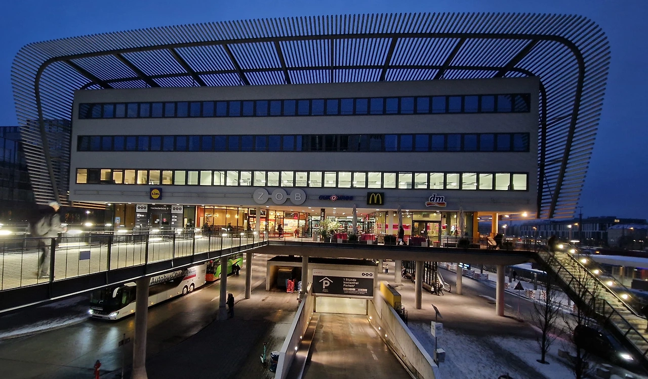 뮌헨의 시내 중심에 위치한 플릭스 버스 Flixbus 터미널 ZOB. 플릭스 버스는 연두색이다(위&가운데). 밀라노 호텔(아래).