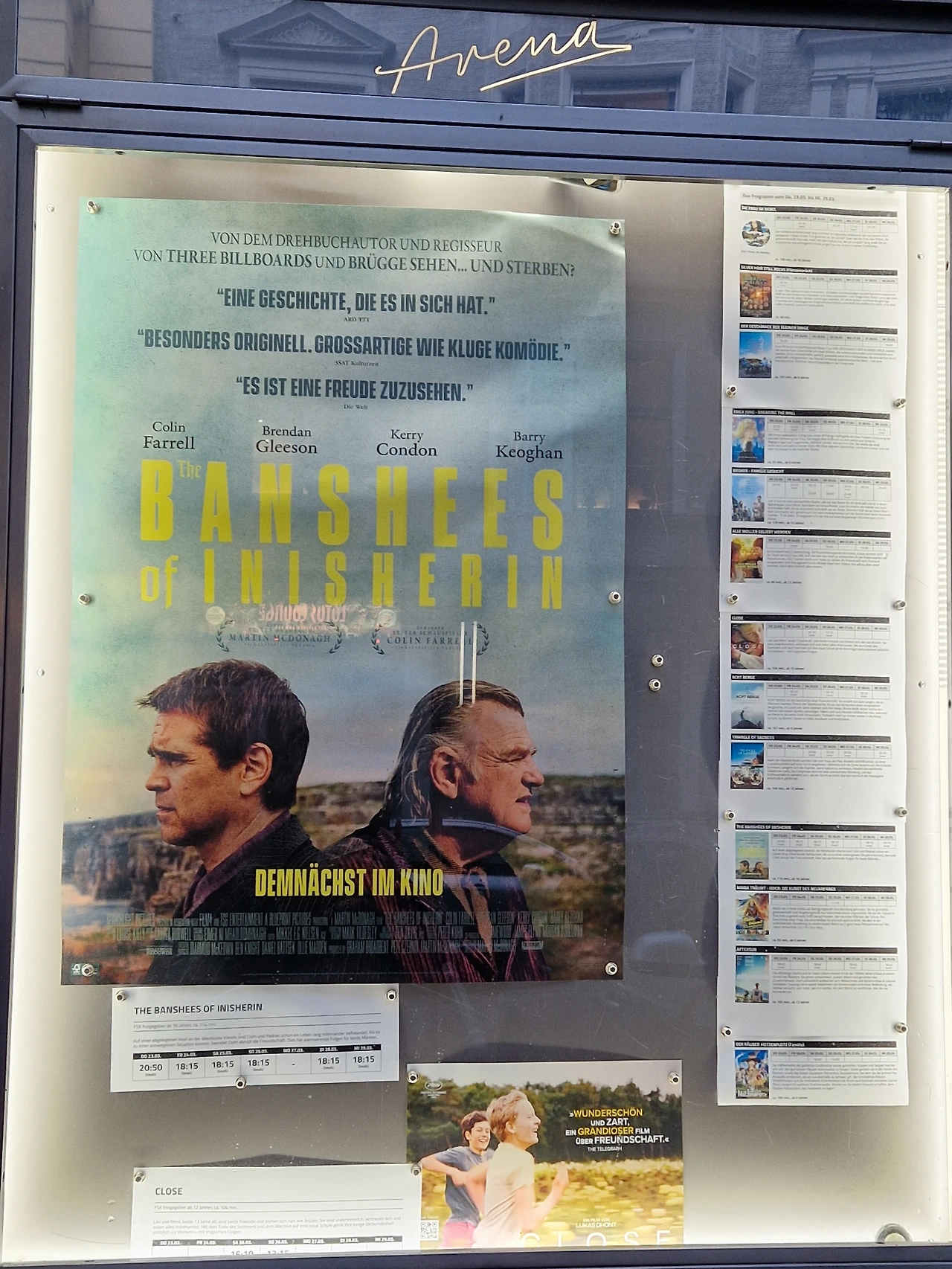 뮌헨의 예술 영화관 아레나 Arena에서 <이니셰린의 밴시>를 보았다. 몇 번을 들어도 입에 잘 붙지 않는 이 영화의 제목은 '아일랜드섬의 죽음을 알리러 온 정령'이란 뜻.* 진짜로 존재하는 섬은 아니라지만 일단 제목이 무시무시하다. 도대체 그 섬에서는 무슨 일이 있었던 걸까. 1923년 4월 1일이라는 시간적 배경을 염두에 두는 것도 중요하겠다. 아일랜드의 내전 말이다, 영국으로부터 독립을 원하는 아일랜드와 영국 합병을 원하는 북아일랜드와의 전쟁을배경으로 깔고 영화는 시작된다.